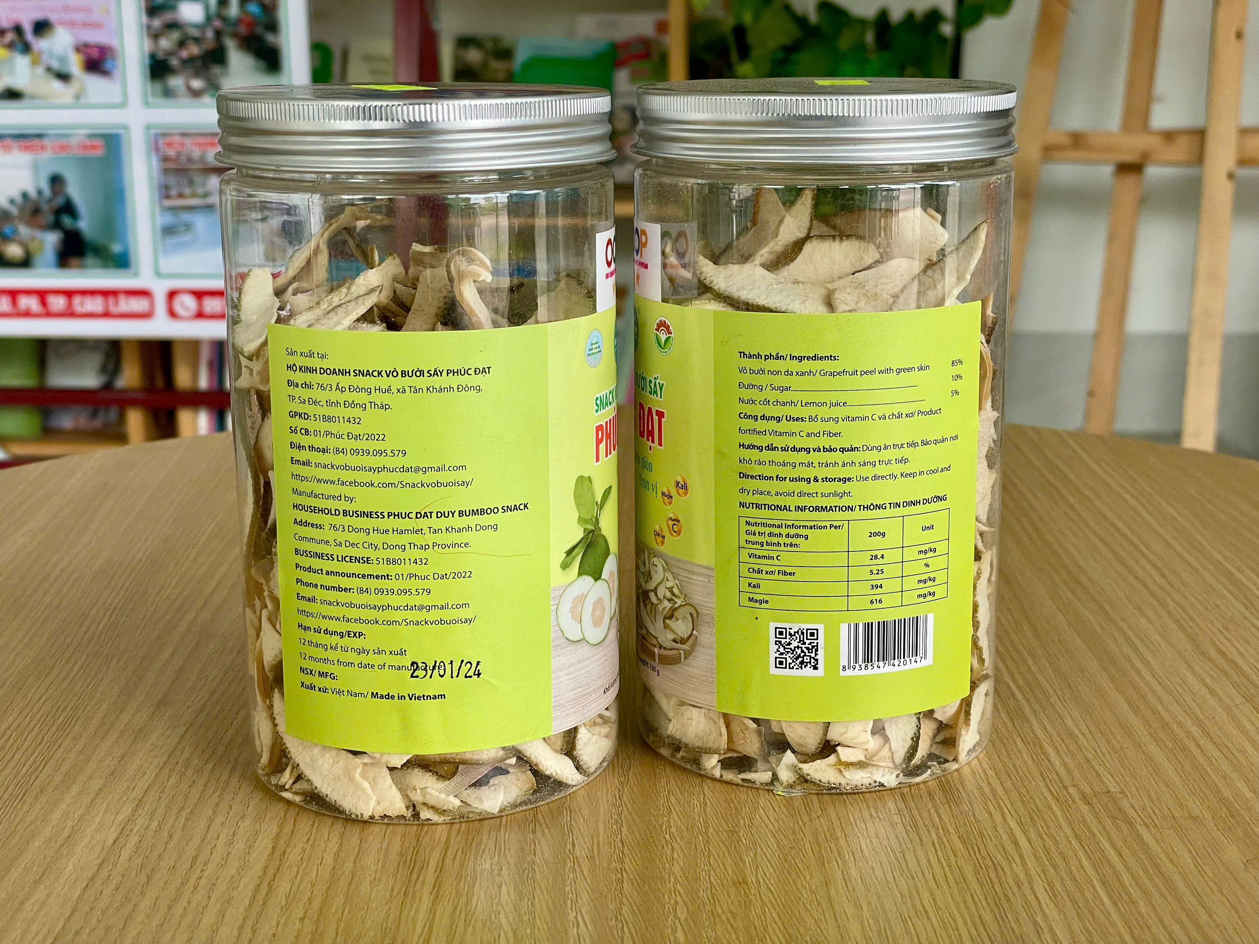 - Sản xuất tại: Hộ kinh doanh snack vỏ bưởi sấy Phúc Đạt