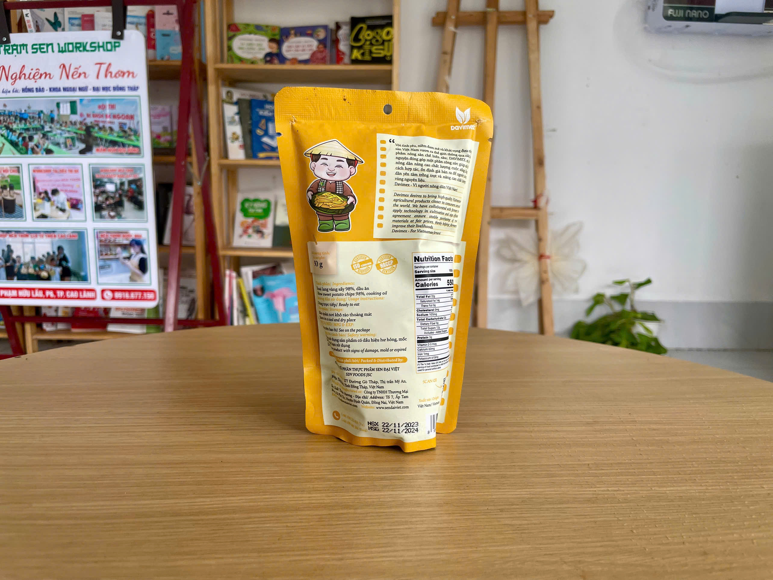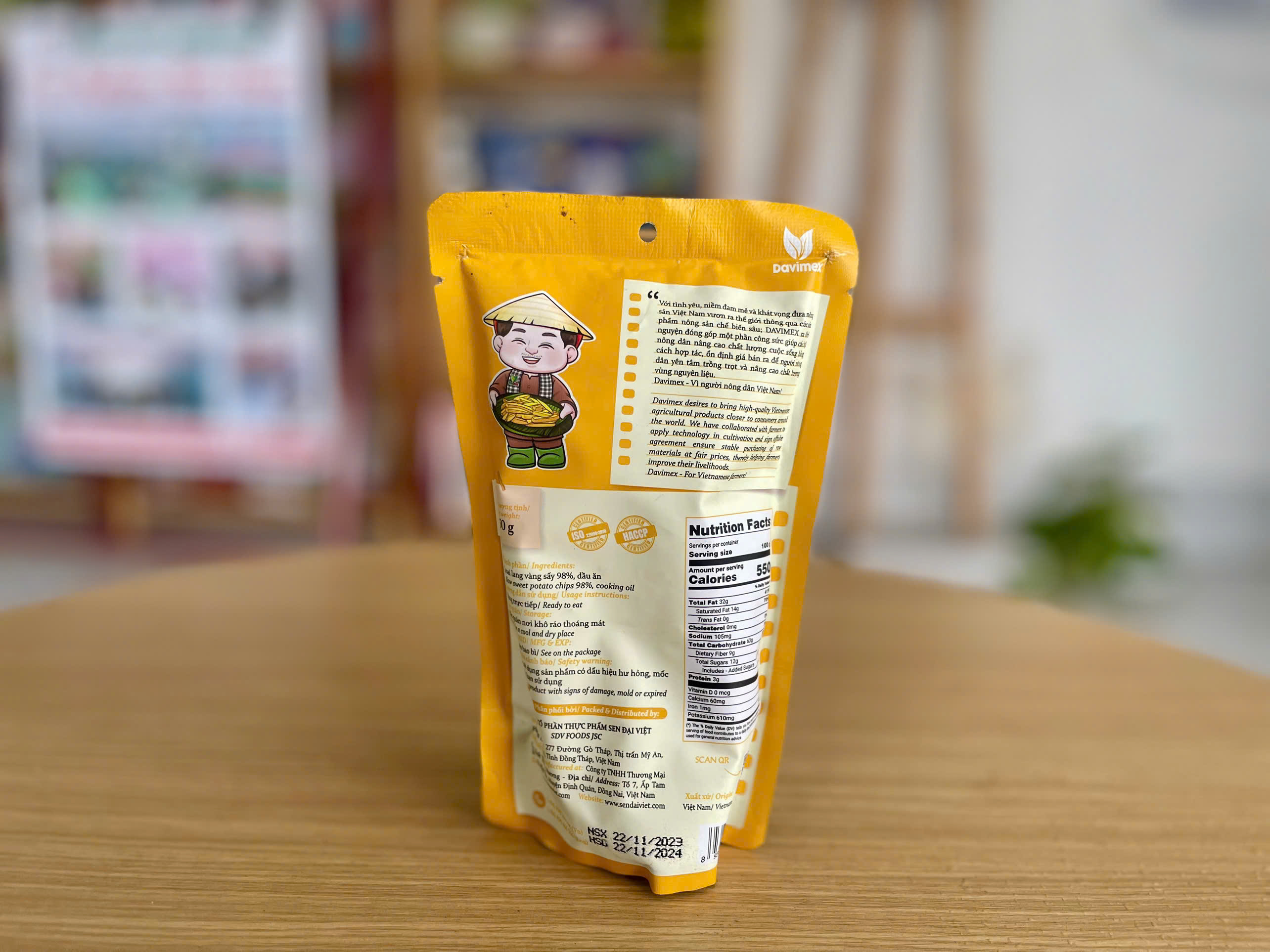 Sản phẩm mang đến sự tiện lợi khi có thể sử dụng ngay mà không cần chế biến thêm, thích hợp cho những ai bận rộn hoặc muốn tìm kiếm một lựa chọn ăn vặt lành mạnh. Khoai lang vàng sấy giòn được chế biến mà không sử dụng chất bảo quản, đảm bảo an toàn sức khỏe cho người tiêu dùng.