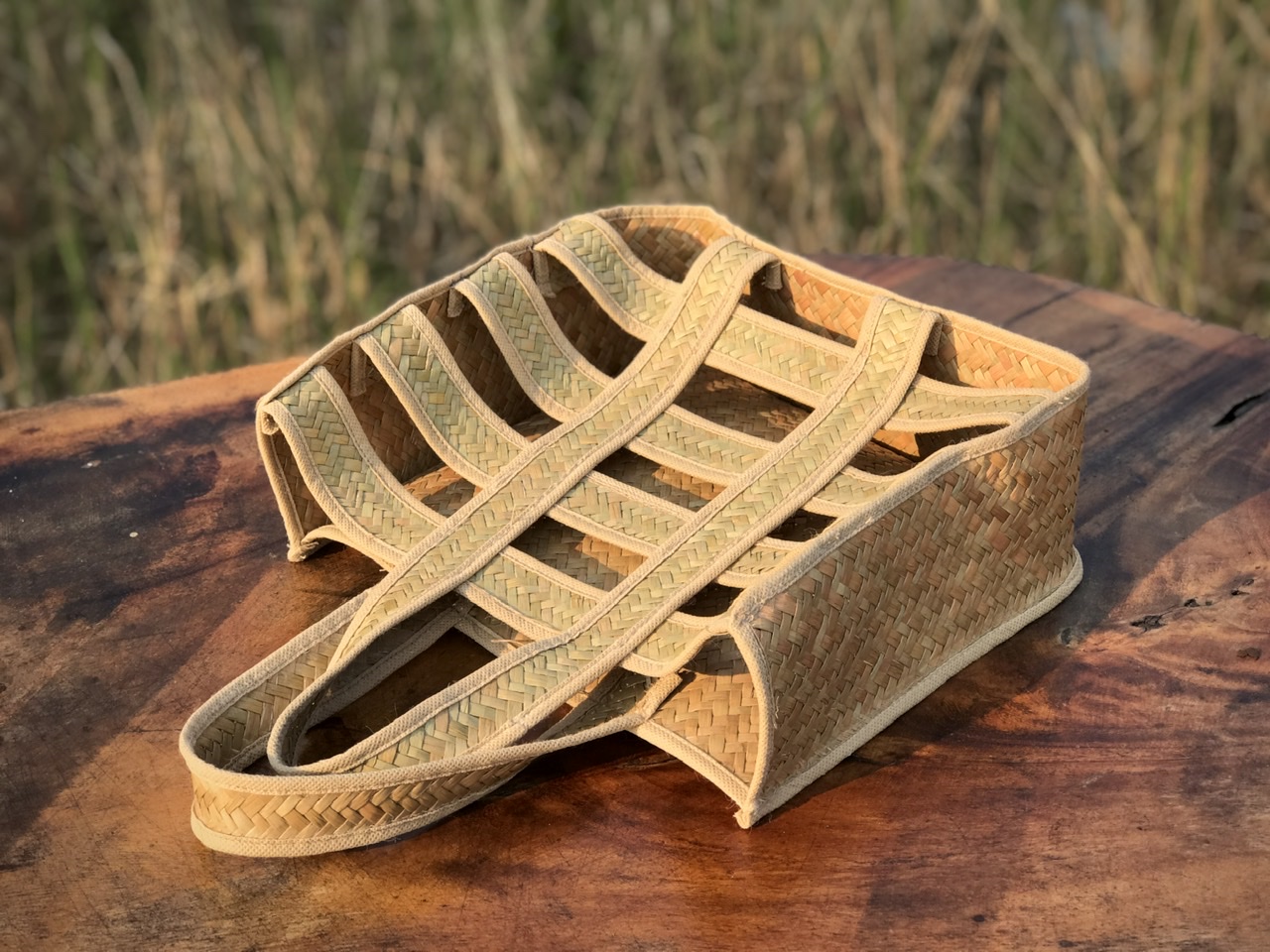 Giỏ bàng chứa quà tặng được làm từ cỏ bàng 100% ngoài tự nhiên, đặc biệt là được đan thủ công bởi những đôi tay điêu luyện của các nghệ nhân.