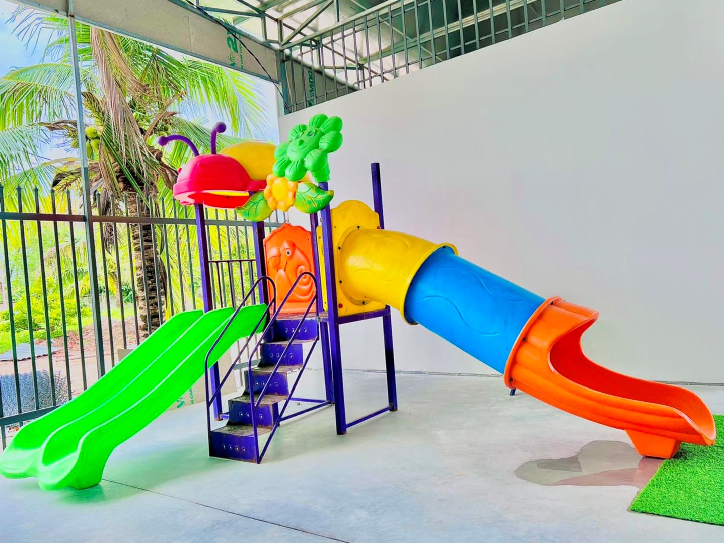 - Khu nhà banh, cầu trượt dành riêng cho các bé với nhiều màu sắc bắt mắt và vui nhộn.