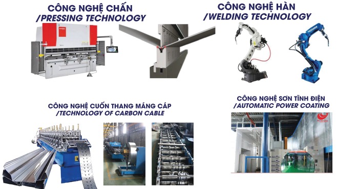 Với sự nỗ lực không ngừng của tập thể cán bộ công nhân viên công ty, cùng sự đầu tư phát triển về mặt cơ sở hạ tầng (9 chi nhánh, 4 nhà máy với 34.000m2), đầu tư máy móc hiện đại (Máy hàn robot, máy chấn, máy đột, máy cắt lazer công nghệ Nhật Bản, Thụy Sỹ…), chúng tôi đã đang và sẽ là đối tác đáng tin cậy trong lĩnh vực sản xuất Tủ Bảng Điện – Thang Máng Cáp, Ống Gió & Thiết bị điện của Quý doanh nghiệp, sớm đạt mục tiêu “khẳng định vị thế trên thị trường trong nước vươn tầm ra thị trường Quốc tế”.