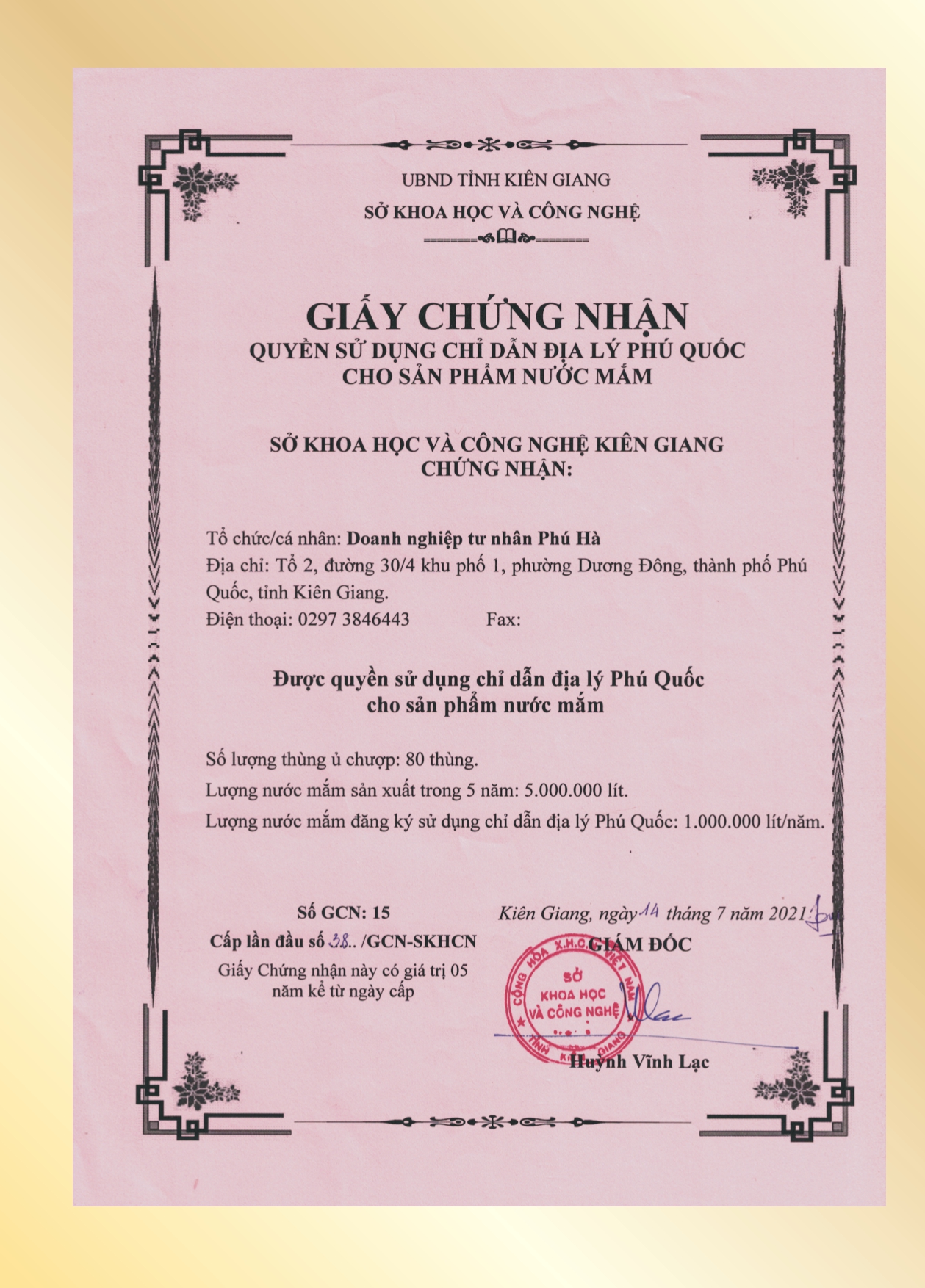 Bên cạnh đó, nước mắm của Phú Quốc vừa được liên minh Châu Âu bảo hộ là sản phẩm đạt chỉ dẫn địa lý, đây chính là thành quả cũng như sự xác nhận về chất lượng của nước mắm Phú Quốc đối với người tiêu dùng. Nước mắm Phú Hà tự hào là một trong những doanh nghiệp đầu tiên đáp ứng được những quy định, yêu cầu nghiêm ngặt để cung cấp đến cho người tiêu dùng trong và ngoài nước những sản phẩm nước mắm Phú Quốc mang chỉ dẫn địa lý.