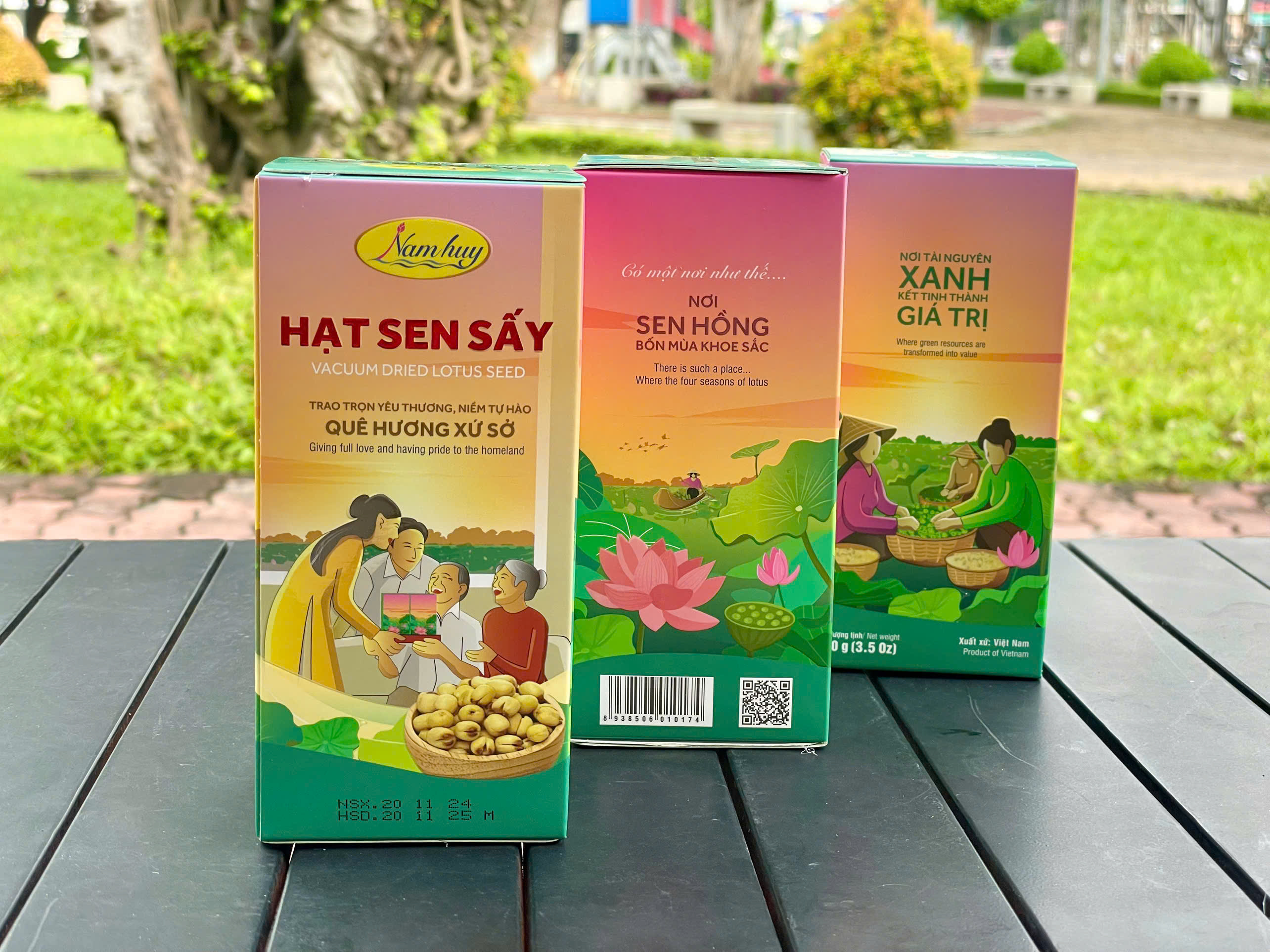 Qua bao mùa mưa nắng, cây sen tồn tại cùng với người nông dân tay lắm chân bùn, thế nhưng giá trị kinh tế của sen không cao lắm.Từ thực tế trên, cùng hoài bão muốn vươn lên bằng chính nông sản sẵn có, ông Huỳnh Văn Hiệp đã mạnh dạn tìm hướng đi mới cho cây sen quê mình. Với niềm tin, sự quyết tâm, ý tưởng sáng tạo, ông đã thành công cho ra đời sản phẩm “Hạt sen sấy” mang thương hiệu Nam Huy. Sản phẩm chứa hàm lượng dinh dưỡng cao, chữa mất ngủ, làm đẹp da, chống lão hóa thích hợp cho cả người ăn kiêng .