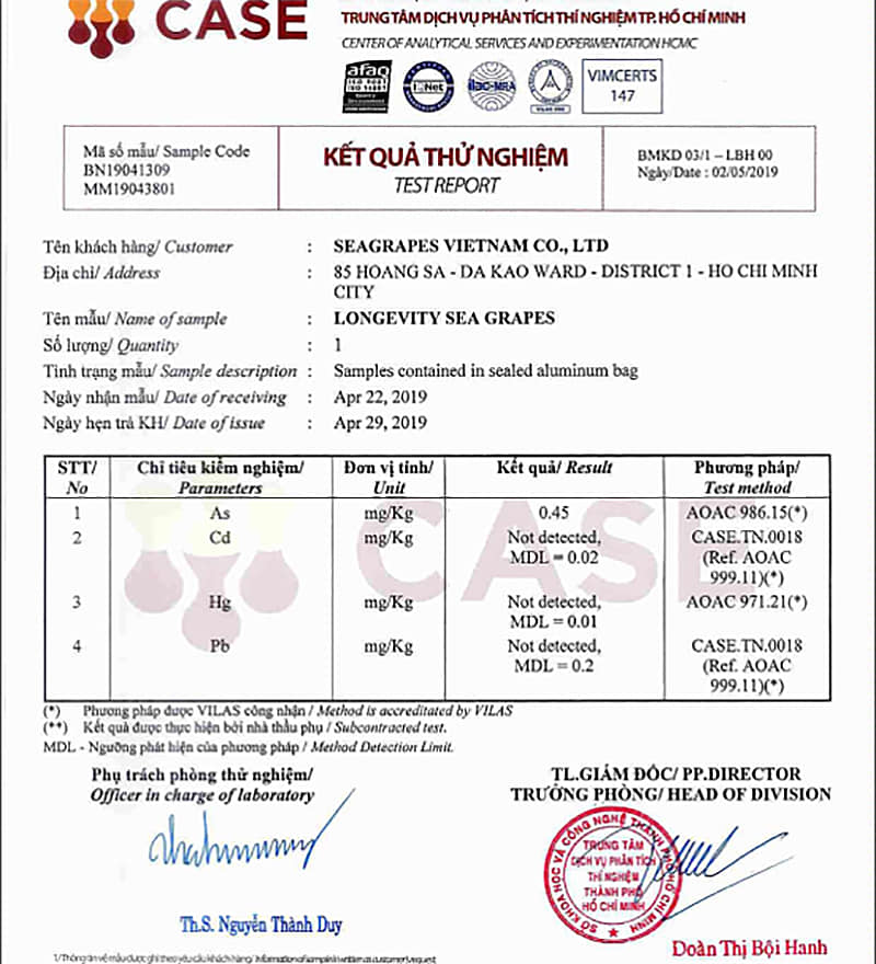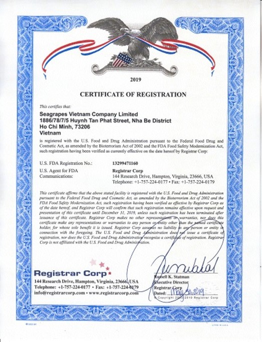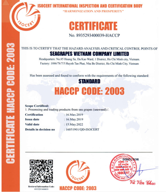 Rong Nho Trường Thọ sản phẩm đảm bảo chất lượng tươi ngon không sử dụng chất bảo quản Đầy đủ chứng chỉ an toàn vệ sinh thực phẩm Được trồng tại vùng biển nuôi trồng sạch Khánh Hòa Việt Nam