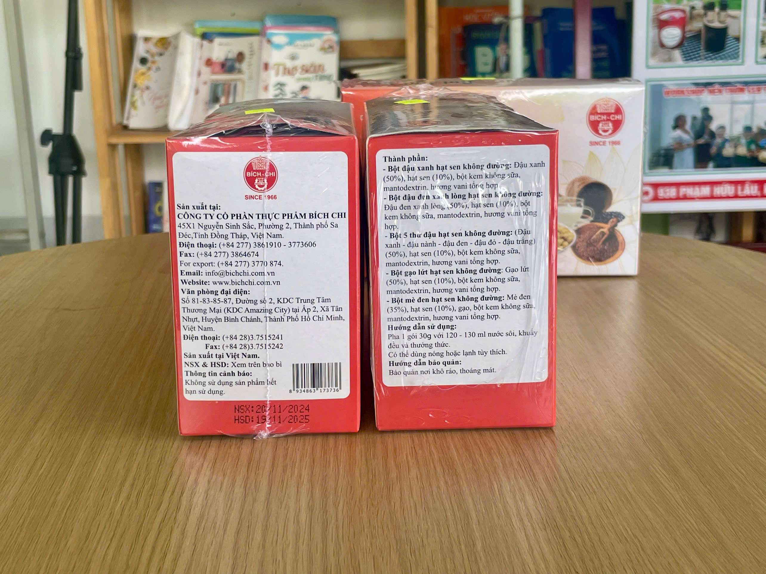 - Bột đậu xanh hạt sen không đường : Đậu xanh, hạt sen, bột kem không sửa, mantodextrin, hương vani tổng hợp.