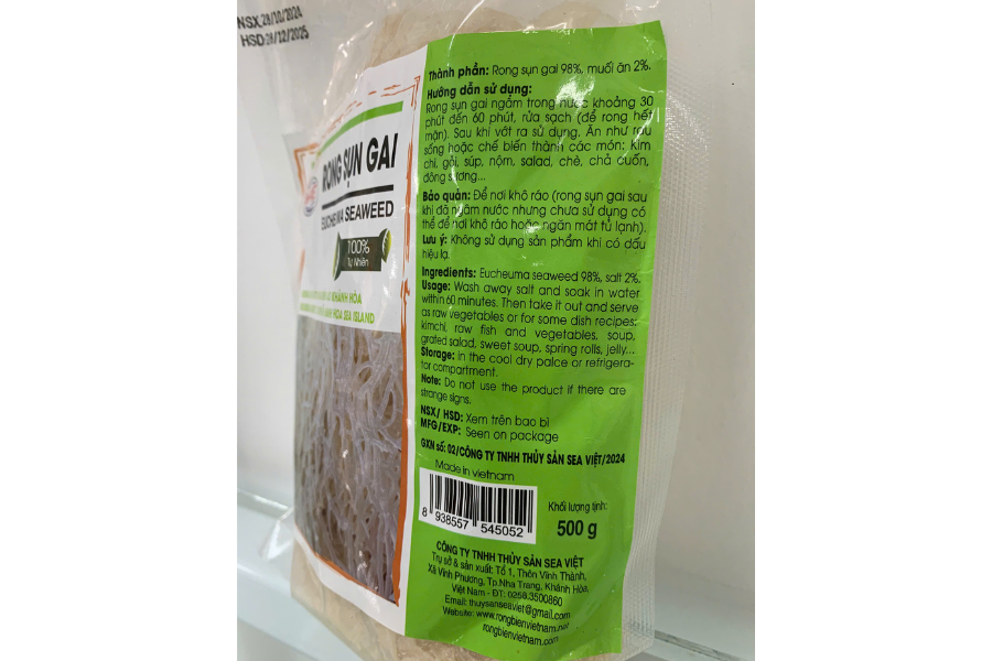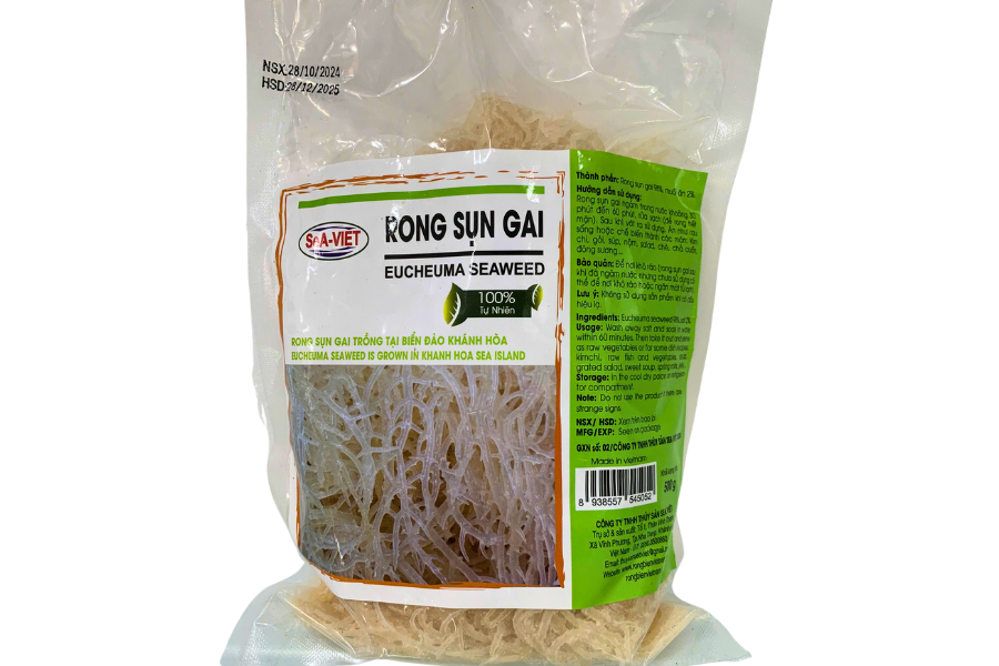 Rong sụn gai là loại rong biển tự nhiên được khai thác và phơi khô trong khoảng một ngày nắng để giảm bớt độ tươi, sau đó bảo quản bằng cách cho thêm một lượng muối nhỏ. Tỷ lệ chế biến của rong sụn gai là 2kg rong tươi được 1kg rong muối. Sản phẩm này được chứng nhận An toàn thực phẩm, đảm bảo an toàn và có lợi cho sức khỏe người tiêu dùng.