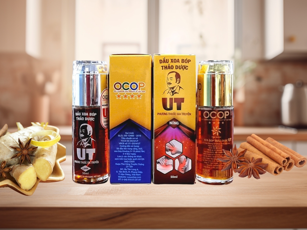Dầu Xoa Bóp Thảo Dược UT (nóng) - Phương thuốc gia truyền, được chiết xuất từ các loại thảo dược thiên nhiên giúp lưu thông khí huyết, làm dịu cơn đau một cách nhanh chóng, hiệu quả.