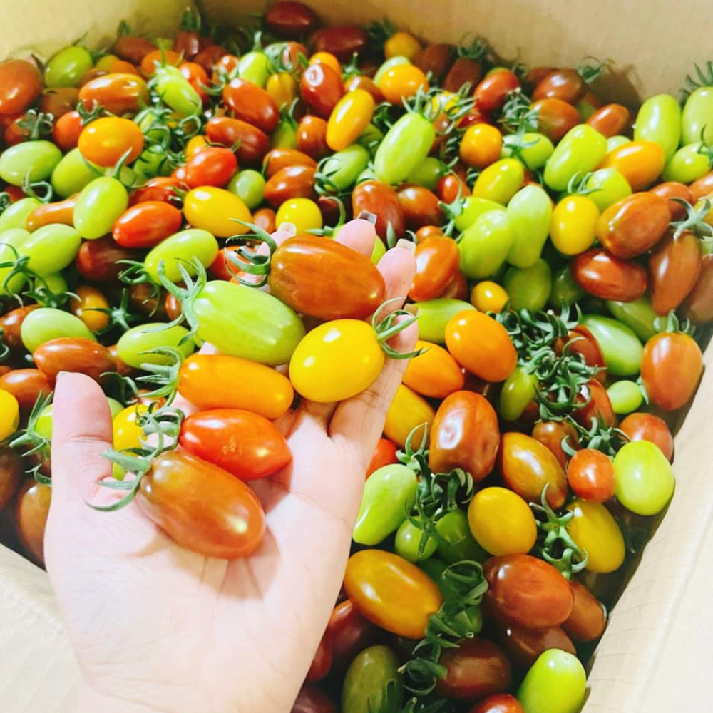 Cà cherry mix là tập hợp của nhiều loại cà chua cherry có màu sắc và hương vị khác nhau như đỏ, vàng, cam và tím. Với hình dáng nhỏ xinh, vỏ bóng, vị ngọt dịu và độ giòn đặc trưng, cà cherry mix không chỉ hấp dẫn về mặt thẩm mỹ mà còn giàu dinh dưỡng. Đây là loại thực phẩm được ưa chuộng trong các món ăn tươi như salad, món khai vị hoặc dùng ăn trực tiếp như một loại trái cây bổ dưỡng. Nhờ sự đa dạng và tiện lợi, cà cherry mix ngày càng trở thành lựa chọn phổ biến trong chế độ ăn uống hiện đại và lành mạnh.