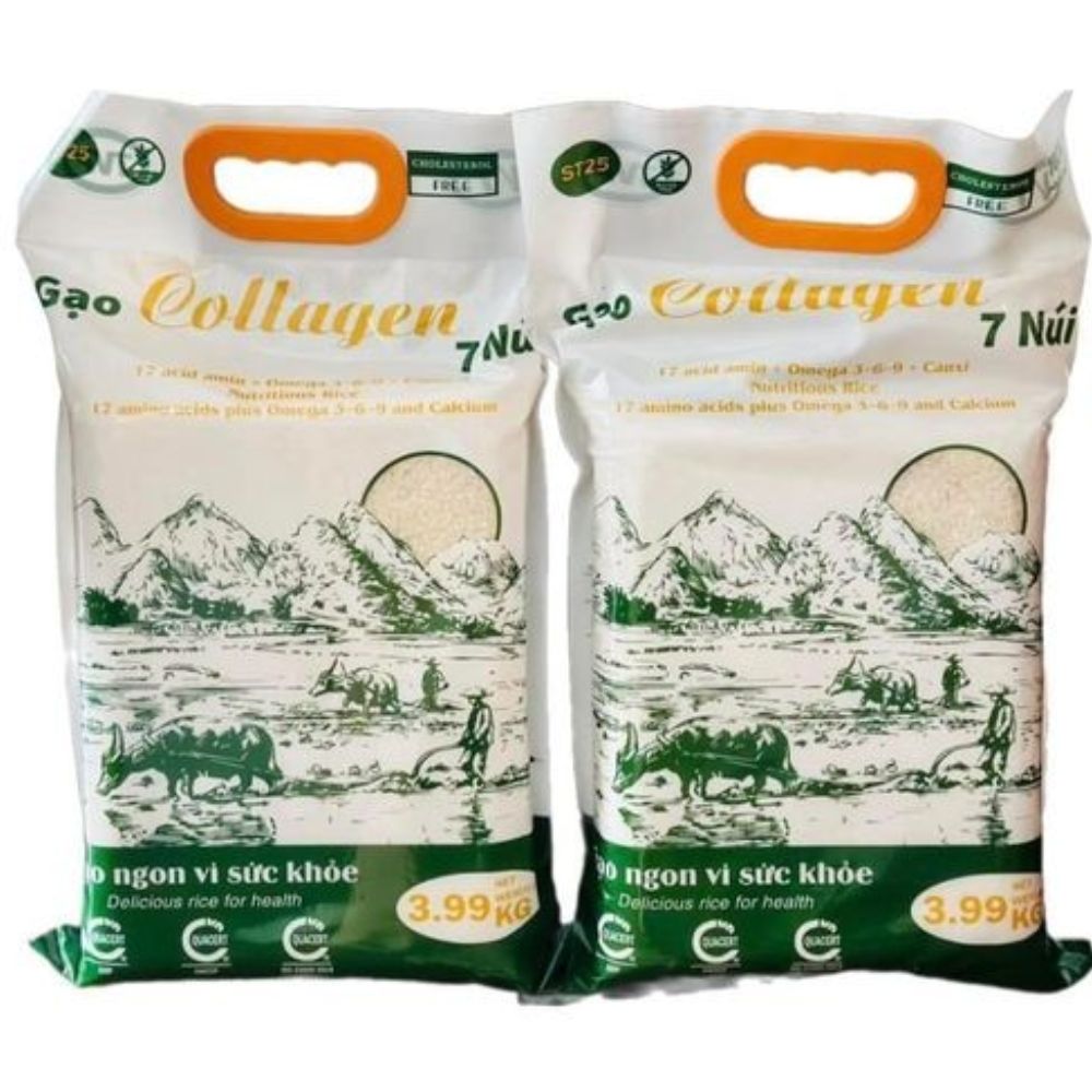 Gạo Collagen 7 Núi - An Giang là sản phẩm độc đáo kết hợp giữa gạo ngon nhất thế giới và những bước tiến đột phá trong công nghệ canh tác dinh dưỡng. Với hạt gạo thon dài, dẻo mềm, thơm ngon nay được bổ sung thêm collagen, omega 3-6-9 và nhóm 17 acid amin thiết yếu, đây là lựa chọn hoàn hảo để chăm sóc sức khỏe và sắc đẹp