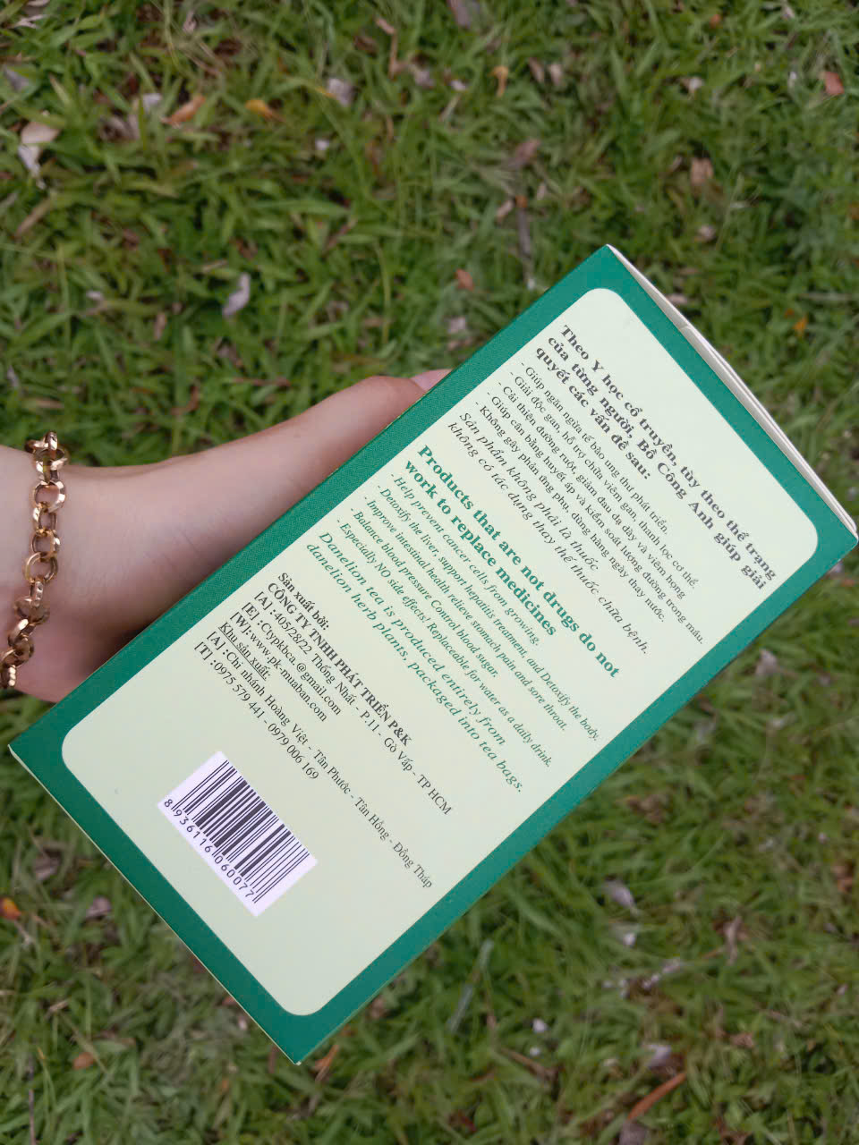- Thành phần : 100% Bồ Công Anh, Bồ Công Anh được chọn là giống Bồ Công Anh ngoại nhập, được công ty P&K trồng theo quy trình kiểm nghiệm của Viện nghiên cứu phát triển cây trồng tỉnh Đồng Tháp, sản xuất theo quy trình khép kín, đảm bảo vệ sinh an toàn thực phẩm