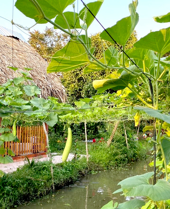 Với phong cảnh vườn cây trái và sông nước hữu tình bên cạnh đó vườn còn bố trí