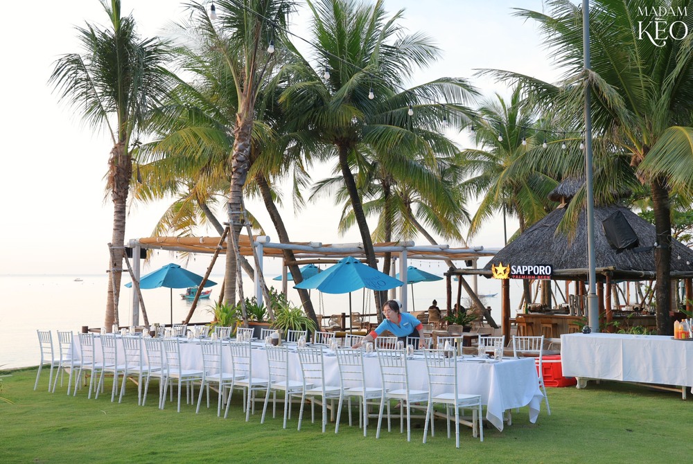 Thực đơn tại nhà hàng đa dạng, nổi bật với các món hải sản tươi sống được chế biến theo phong cách dân dã, đậm đà hương vị địa phương nhưng vẫn có sự sáng tạo, tinh tế trong cách bày trí và kết hợp nguyên liệu. Ngoài ra, Madam Kèo còn phục vụ món nướng tại bàn và nhiều lựa chọn hấp dẫn khác phù hợp với mọi khẩu vị. Không chỉ là nơi lý tưởng để thưởng thức các bữa ăn ngon, Madam Kèo còn là điểm đến tuyệt vời cho những buổi gặp mặt bạn bè, tiệc gia đình, tổ chức sự kiện hay đơn giản là tận hưởng khoảnh khắc ngắm hoàng hôn lãng mạn bên bờ biển. Với chất lượng phục vụ chuyên nghiệp, không gian đẹp và ẩm thực hấp dẫn, Madam Kèo hứa hẹn mang đến cho thực khách những trải nghiệm khó quên tại đảo ngọc Phú Quốc.