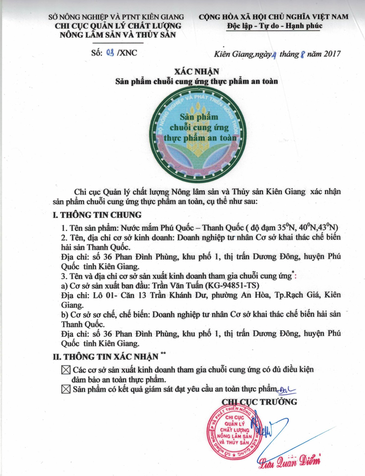 Công ty TNHH Sản Xuất Và Kinh Doanh Nước Mắm Thanh Quốc tự hào là một trong những công ty đầu tiên sản xuất nước mắm Phú Quốc của Việt Nam, có bề dày lịch sử hơn 100 năm với 4 thế hệ kế thừa truyền thống.