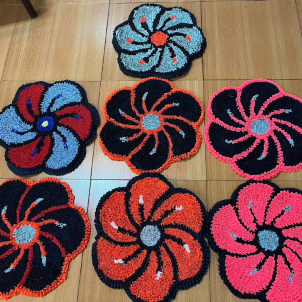 Thảm lau được làm thủ công bởi các hội viên phụ nữ, thảm làu cùng với công dụng dùng để loại bỏ bụi bẩn dính trên chân