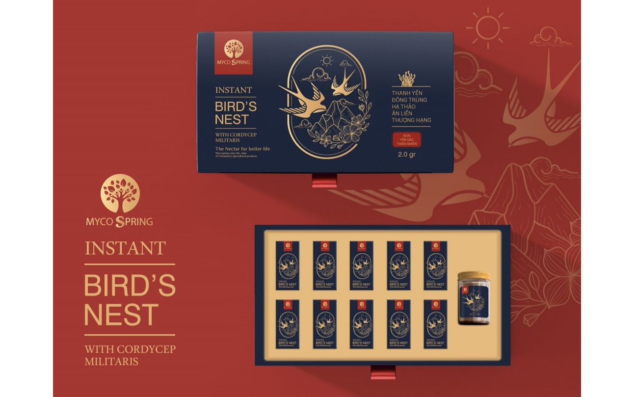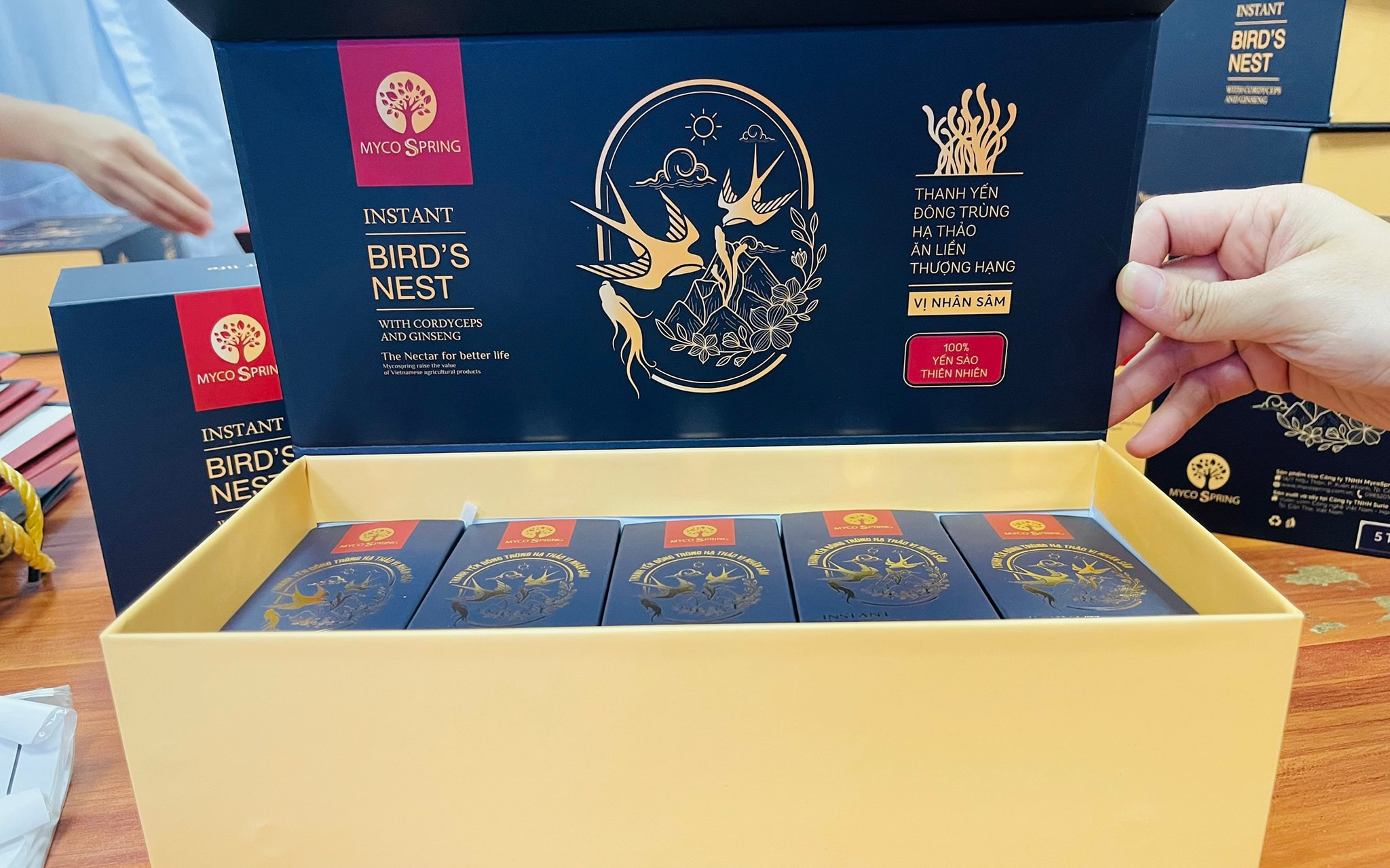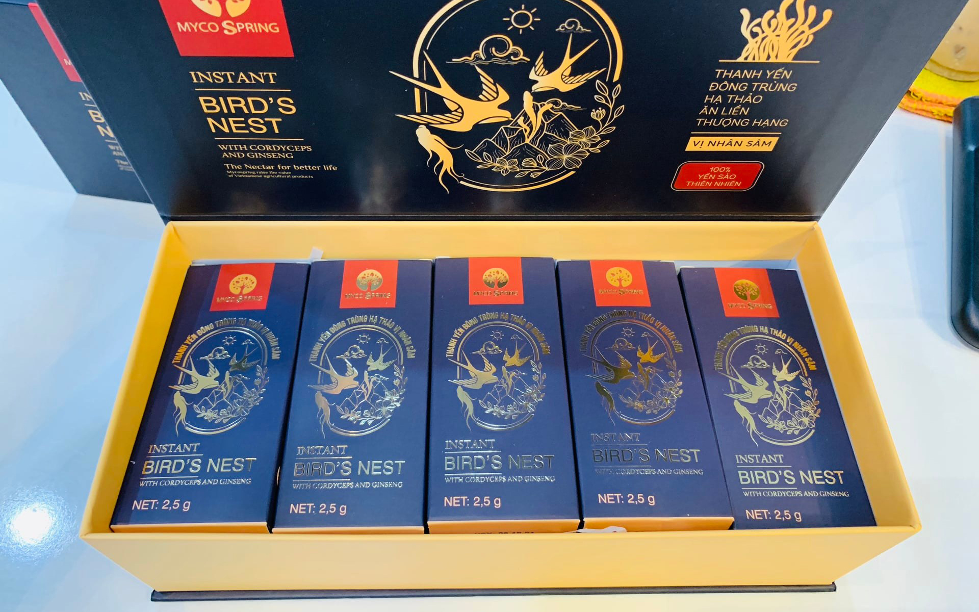 Thanh yến Đông trùng hạ thảo ăn liền là sản phẩm đặc biệt của Thương hiệu MycoSpring nghiên cứu và sản xuất dựa trên công nghệ chế biến và sấy thăng hoa hiện đại của Israel nhằm giúp rút ngắn thời gian chế biến nhưng giữ được hơn 95% dưỡng chất tự nhiên của tổ yến, dược chất của nấm đông trùng cũng như thành phần ginsengnoid có bên trong nhân sâm.
