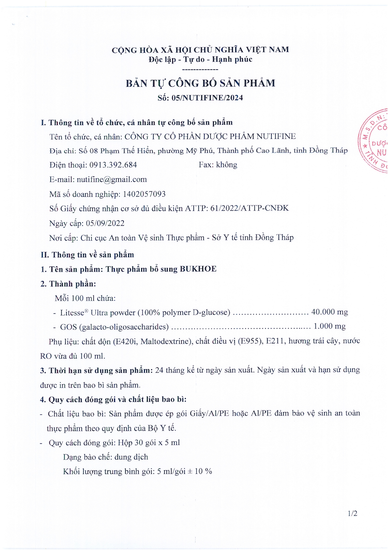 Đó cũng là lý do ra đời của siro BUKHOE, một sản phẩm bổ sung chất xơ, chống táo bón và tăng hệ vi sinh đường ruột, hương vị thơm ngon, phù hợp khẩu vị trẻ nhỏ, nguyên liệu nhập khẩu từ Mỹ và được sản xuất tại nhà máy đạt tiêu chuẩn GMP. Chất nền của sản phẩm được sử dụng là đường bắp an toàn cho sức khỏe và chất liệu bao bì thân thiện với môi trường.