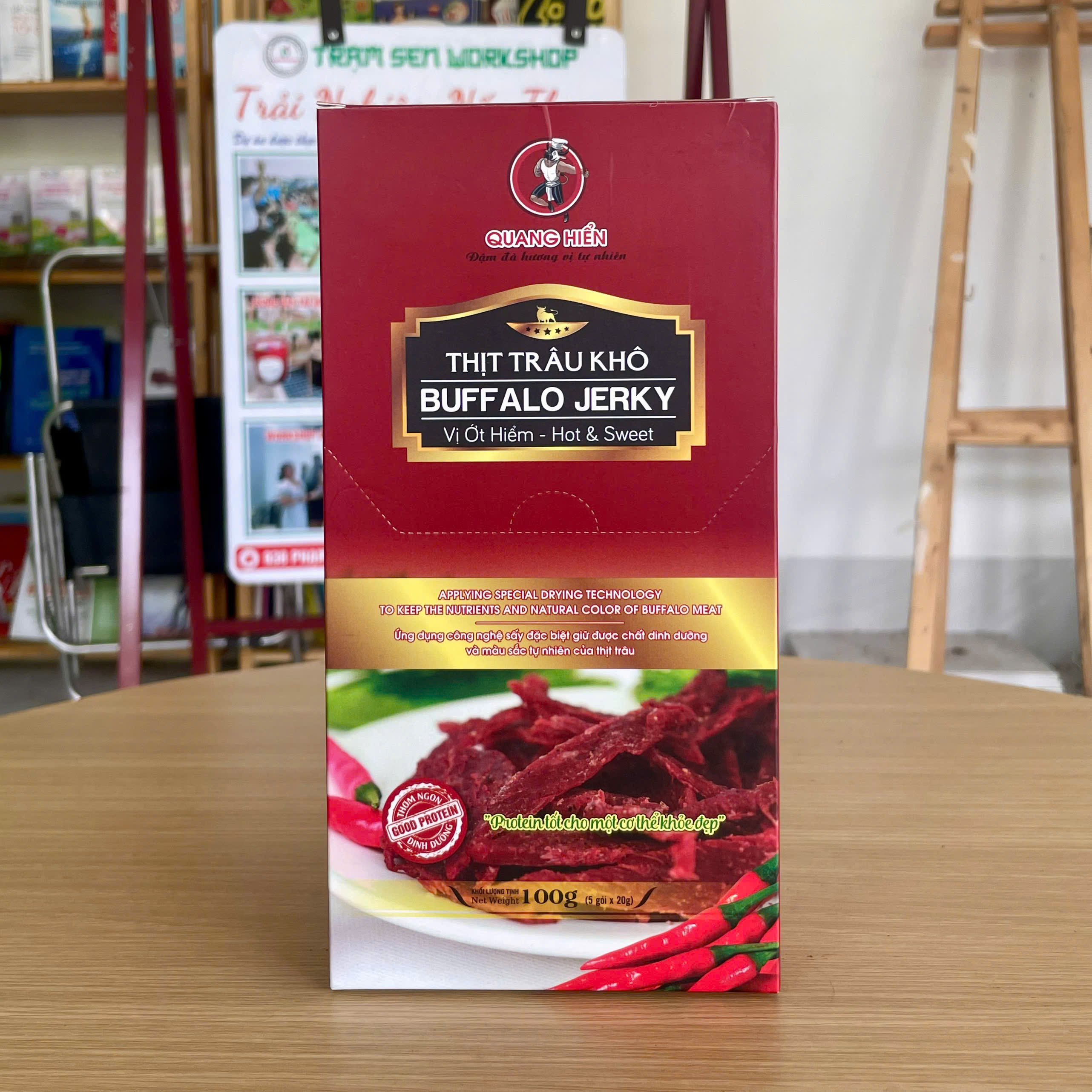 - Bảo quản đúng cách: Để sản phẩm luôn giữ được hương vị và chất lượng, hãy bảo quản Thịt Trâu Khô Quang Hiển ở nơi khô ráo, thoáng mát và tránh ánh nắng trực tiếp. Sau khi mở bao bì, nên bảo quản trong túi zip hoặc hộp kín để tránh tiếp xúc với không khí.