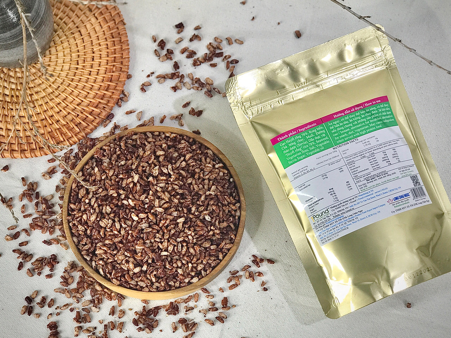 - Thành phần: Gạo huyết rồng (78%), rong biển, chà bông chay, muối, đường thảo dược, dầu thực vật "Huyết rồng" rice 78%, Seaweed, Vegetarian floss, Salt, Vegetable, Stevia Sugar, Vegetable oil