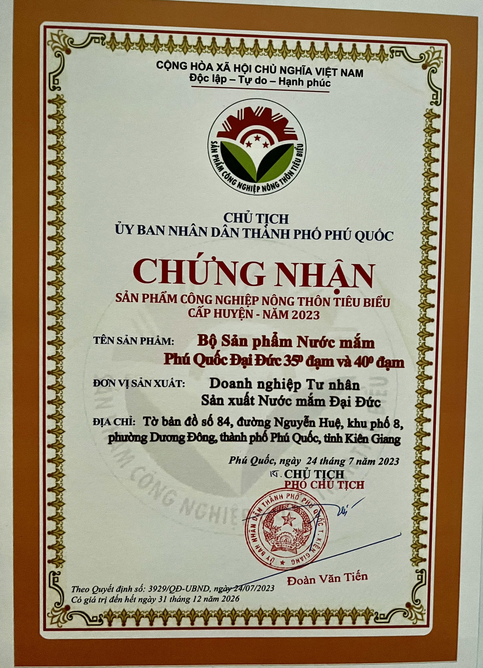 Những năm qua, hãng nước mắm Đại Đức đã không ngừng tích lũy vốn, mở rộng sản xuất, đầu tư mua sắm đội ghe hùng hậu chuyên đi đánh bắt nguyên liệu cá cơm trên vùng biển Phú Quốc – Kiên Giang để tạo ra sản lượng hàng triệu lít nước mắm mỗi năm, đưa đi tiêu thụ khắp trong Nam, ngoài Bắc và xuất khẩu sang nhiều nước trong khu vực và gìn giữ nghề truyền thống của các bậc tiền nhân