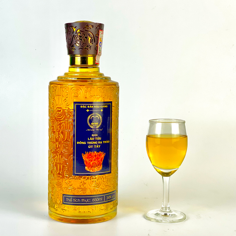 Rượu Lão Tửu Đông Trùng Hạ Thảo Út Tây - Chai Thủy Tinh 650ml - Đặc Sản Hậu Giang