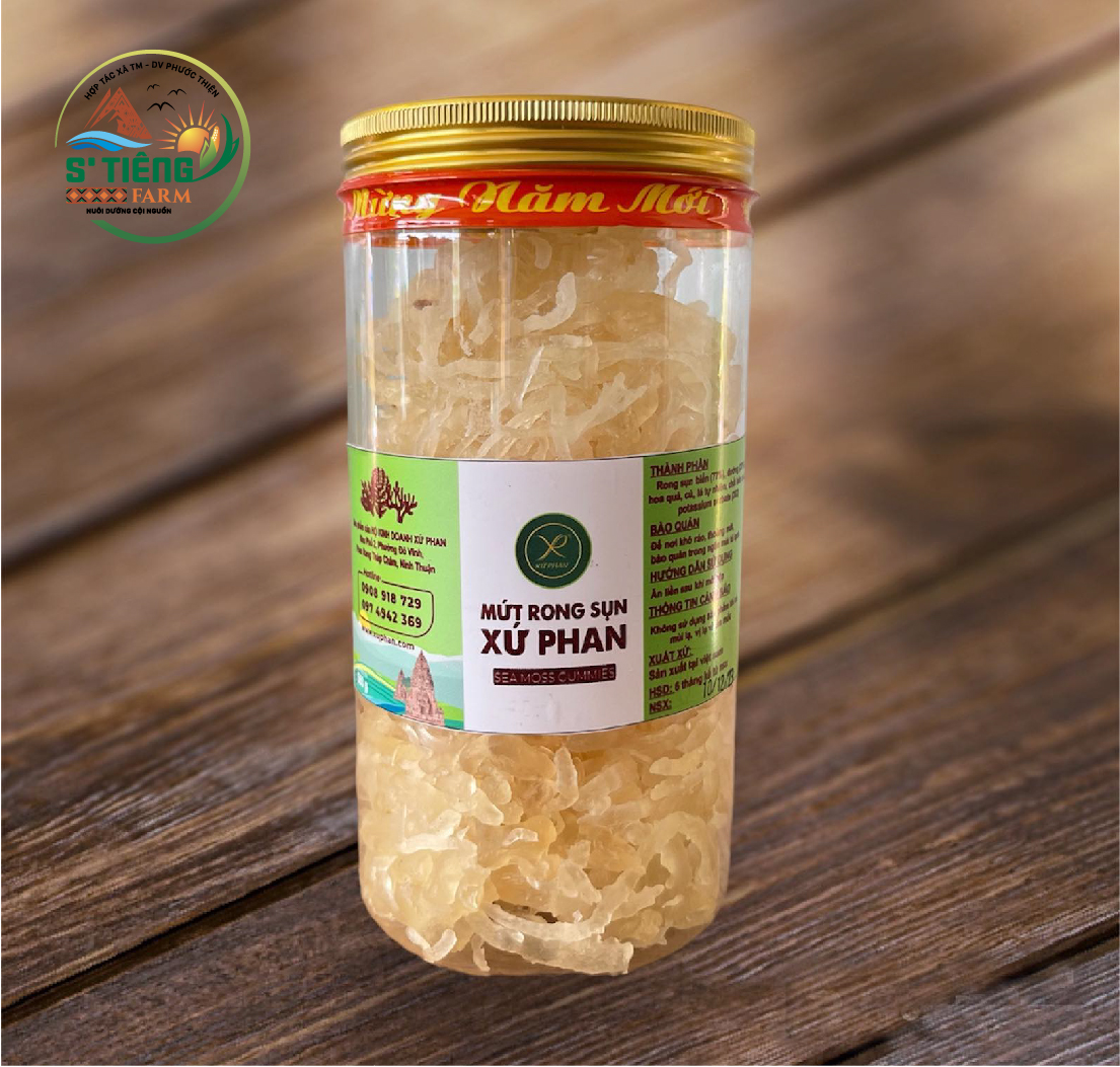 Mứt rong sụn là từ rong sụn tươi từ biển, qua các bước sơ chế kĩ lưỡng sau đó sấy khô và hút chân không. Mứt rong sụn giòn dai, sực sực khi ăn và có vị ngọt nhẹ. Đây là món ăn vặt có nhiều lợi ích cho sức khỏe, được ví là sâm biển, chứa nhiều khoáng chất bồi bổ cơ thể, tốt cho hệ tiêu hóa, tim mạch, xương khớp và giúp đẹp da, đẹp dáng. Giàu các vitamin và khoáng chất giúp giảm stress, căng thẳng, mệt mỏi, cải thiện tiêu hoá, thải độc, chống oxi hoá…Giờ đây khi đến Ninh Thuận du khách sẽ có thêm đặc sản địa phương mang về làm quà cho gia đình, bạn bè sau chuyến hành trình ghé thăm xứ sở nắng gió.