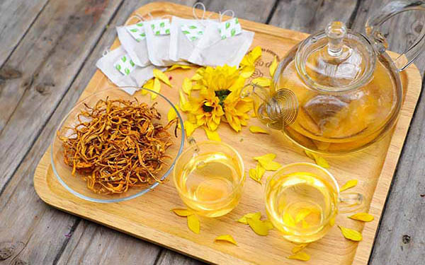 Ngoài ra, bạn cũng có thể sử dụng đông trùng hạ thảo kết hợp với các loại thảo dược khác như nhân sâm, kỷ tử để pha thành trà. Tương tự như trên bạn cũng cần chuẩn bị trùng thảo khô và nhân sâm mỗi loại từ 2-3g cho vào bình trà. Sau đó, tráng qua nước sôi 1 lần và rót thêm nước rồi mới để hãm trà trong 10 phút rồi uống.