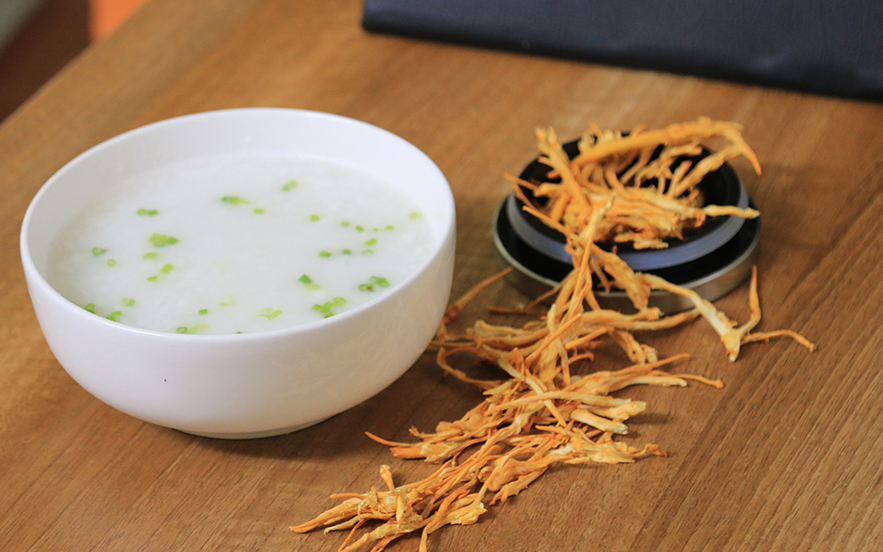 Đông trùng hạ thảo cũng thường được sử dụng để chế biến thành nhiều món ăn khác nhau như hầm gà, hầm ba ba hay nấu cháo. Dưới đây là cách làm món cháo gà nấu với đông trùng hạ thảo đơn giản ngon miệng, bổ dưỡng mà bạn có thể tham khảo: