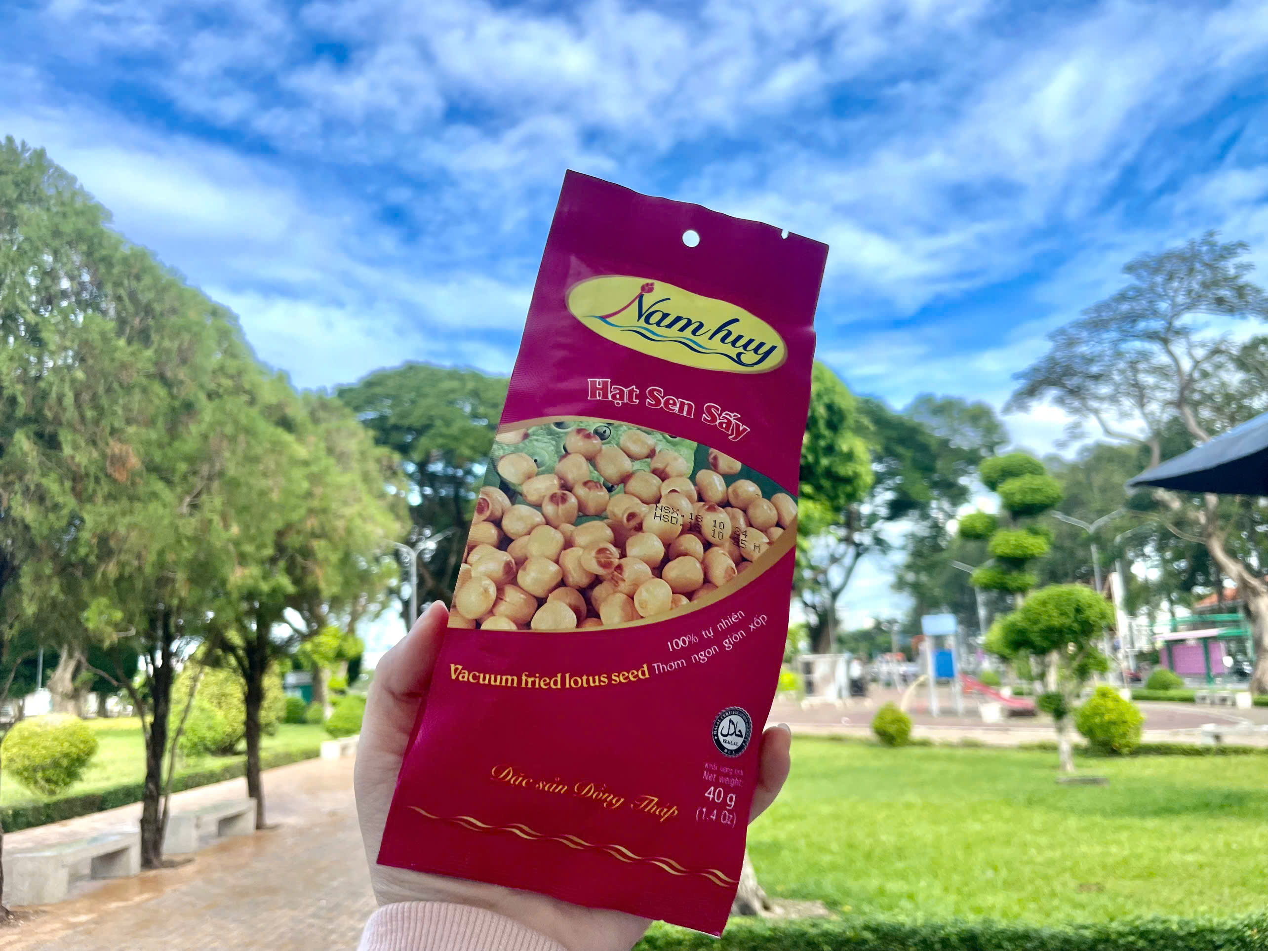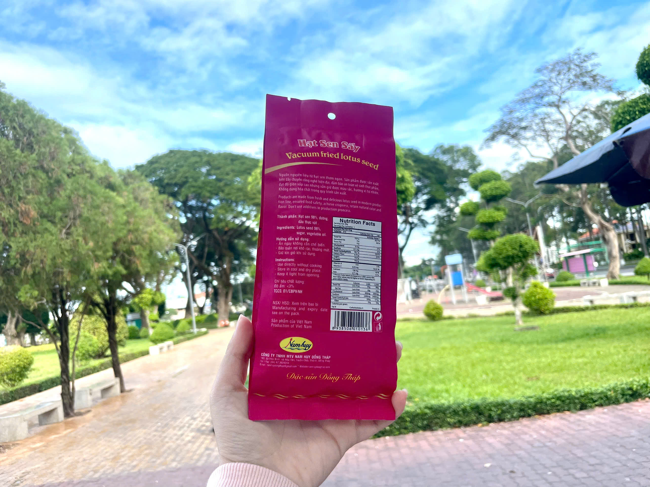 Hạt sen sấy Nam Huy Đồng Tháp được chế biến từ 100 sen tươi tự nhiên với công nghệ sấy chân không tiên tiến giúp sản phẩm giữ được sự thơm ngon của hạt sen tươi là sản phẩm tốt cho sức khoẻ và đều sử dụng được cho mọi lứa tuổi