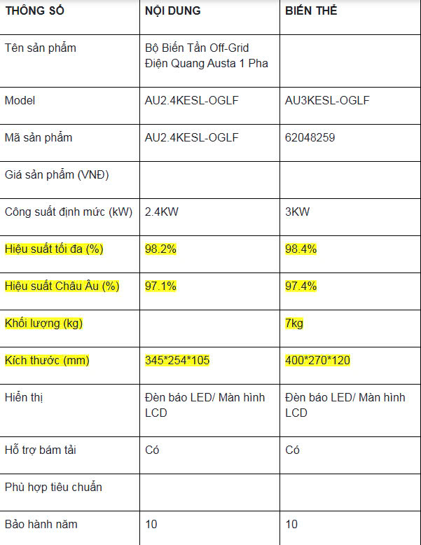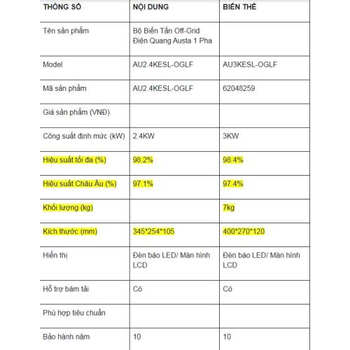 Giới thiệu bộ biến tần Off-grid Austa AU2.4KESL-OG (1 Pha, 2.4kW)