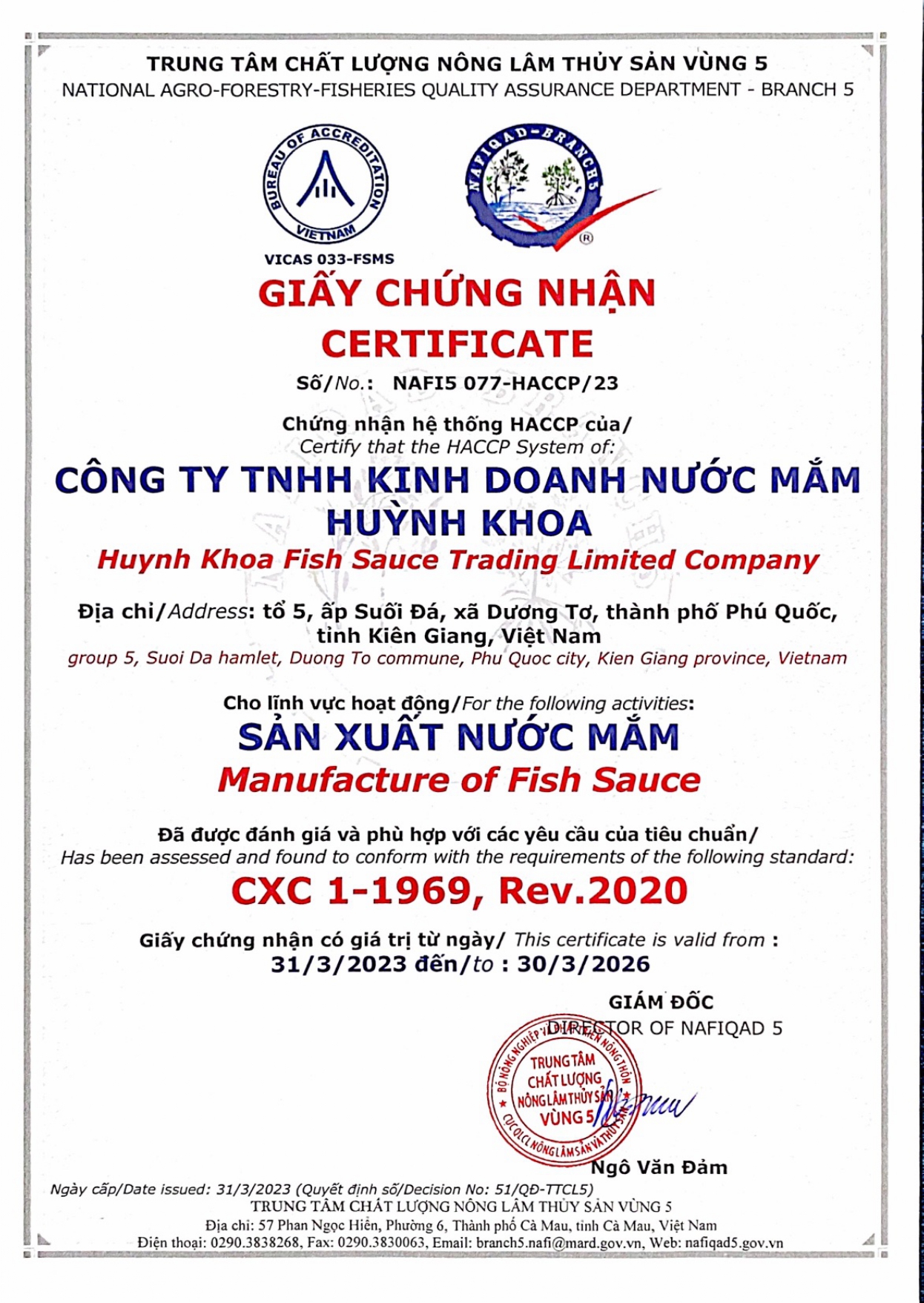 LNV - Nước mắm truyền thống Phú Quốc Huỳnh Khoa, sản phẩm truyền thống trăm năm được bảo hộ chỉ dẫn địa lý của Liên Minh Châu Âu – EU và 28 nước Châu Âu với bề dày lịch sử của Làng Nghề Truyền Thống hơn 200 năm. Nước mắm Phú Quốc Huỳnh Khoa là loại nước mắm không chỉ nổi tiếng tại Việt Nam mà còn được biết đến ở khắp nơi trên thế giới. “Vị ngon đến từ Đảo ngọc” đã tạo nên một nét đẹp văn hóa trong ẩm thực vô cùng ấn tượng trong mắt khách du lịch.
