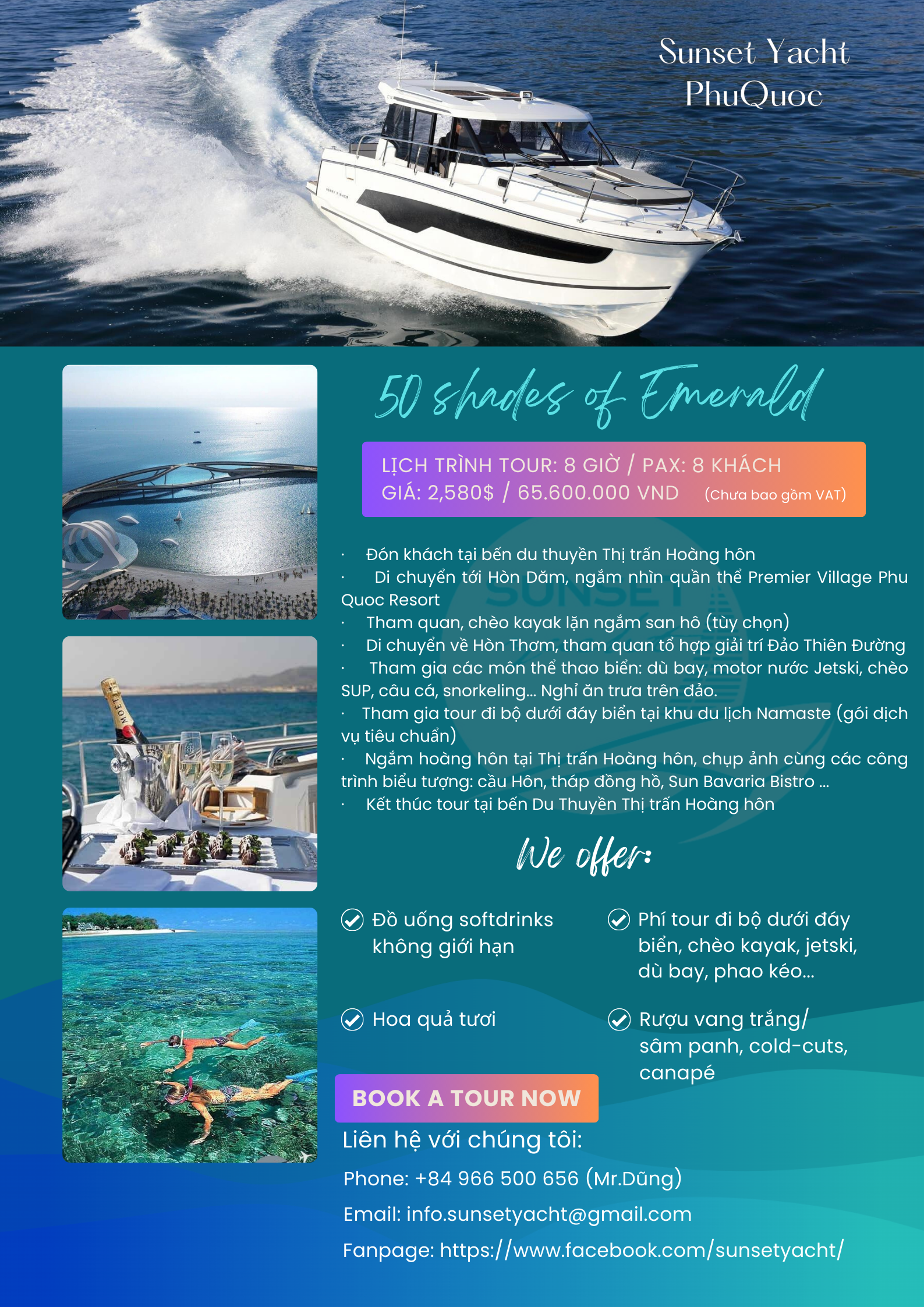 Một chuyến du ngoạn biển sang trọng và đầy ấn tượng có phải là điều bạn đang tìm kiếm không Vậy thì Du thuyền riêng tham quan của chúng tôi chắc chắn sẽ mang đến cho bạn những trải nghiệm đẳng cấp trong không gian riêng tư và dịch vụ chuyên nghiệp để bạn