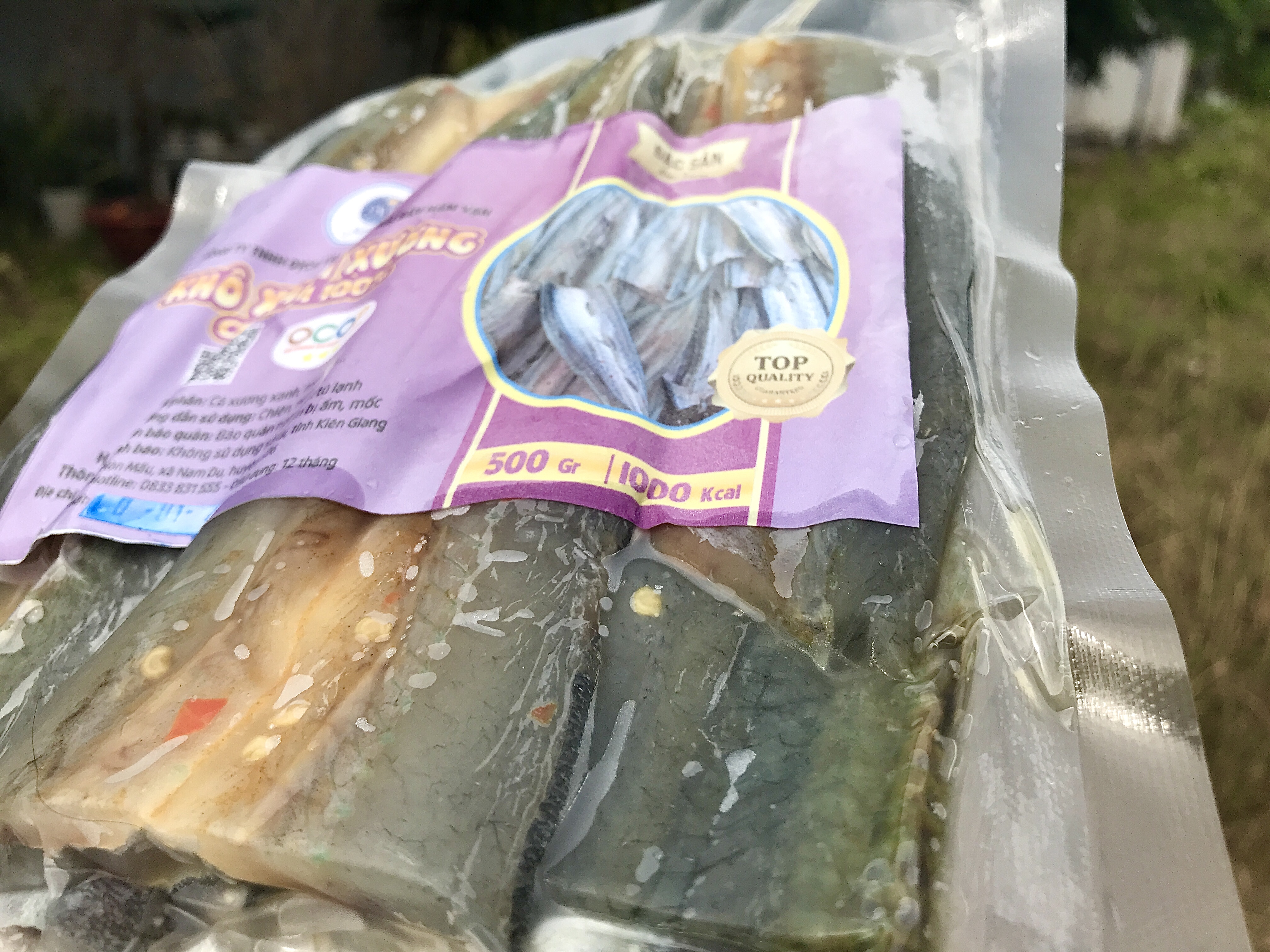 Khô cá xương xanh được đóng gói và hút chân không cẩn thận, được ướp sẳn với các gia vị nên rất tiện để sử dụng.