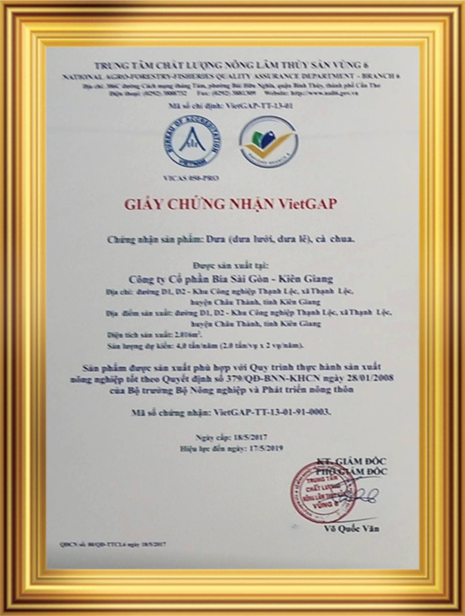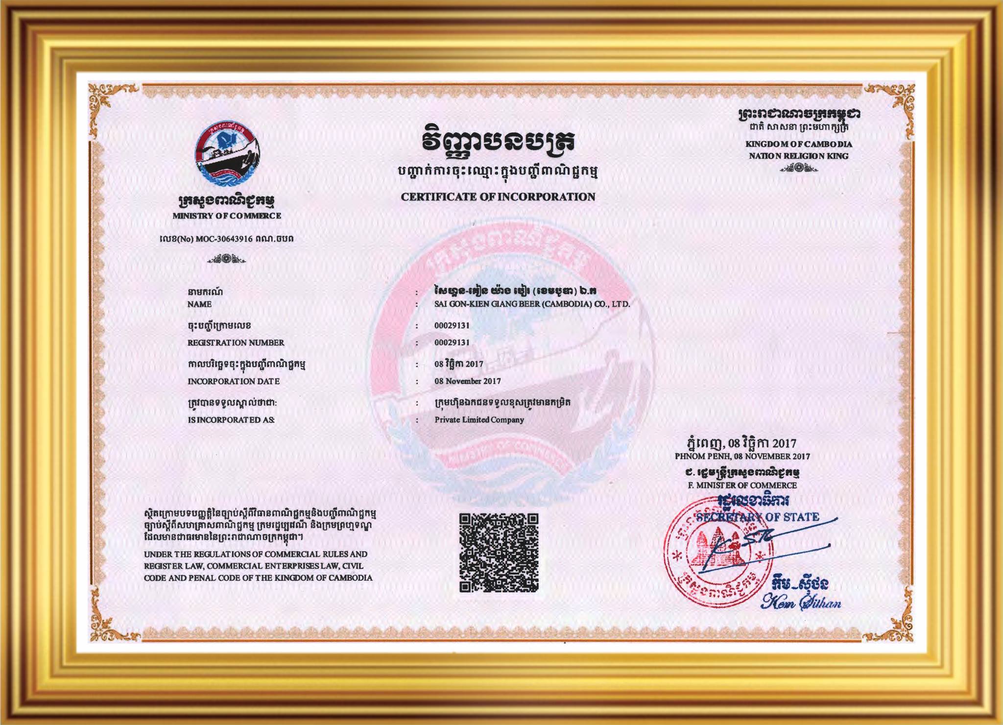 Ngày 19/11/2013 được sự chấp thuận của Bộ Công Thương về chủ trương xây dựng nhà máy Bia tại tỉnh Kiên Giang theo Công Văn Số 10646/BCT-CNN