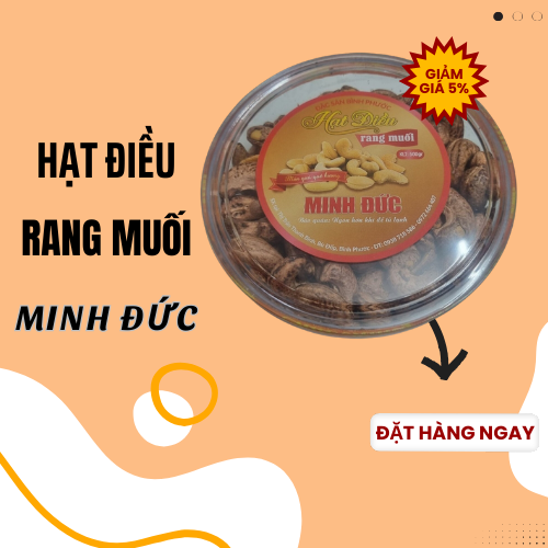 Hạt điều Rang Muối Minh Đức được làm từ hạt điều Bình Phước có hương vị đậm đà, giòn tan, thơm ngon và đặc biệt không sử dụng chất bảo quản hay phẩm màu nhân tạo, giúp đảm bảo sức khỏe cho người dùng.