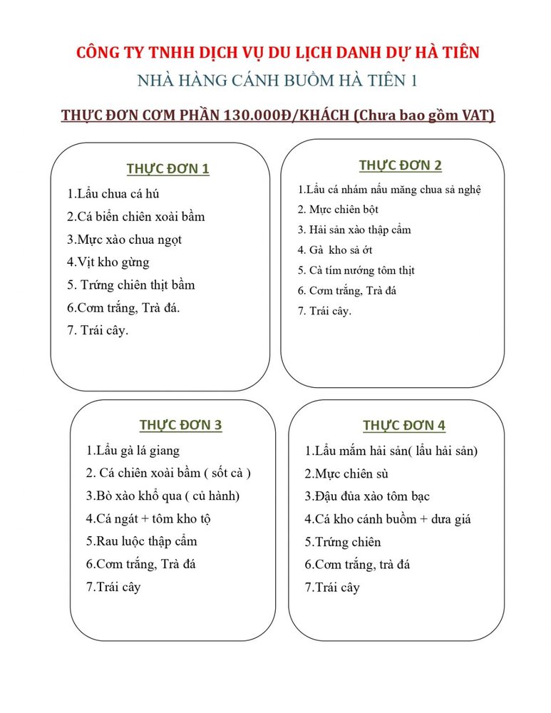 Nhà Hàng Cánh Buồm Hà Tiên chuyên phục vụ: ăn sáng, cơm phần khách đoàn, hải sản tươi sống. Với thực đơn đa dạng, không gian thoáng mát, ngồi bên nhà hàng có thể nhìn thấy cầu Tô Châu, bến phà Thạnh Thới để đi Phú Quốc, cảnh biển view đẹp,… sẽ giúp Quý khách có được chuyến đi vui vẻ và trải nghiệm thú vị.