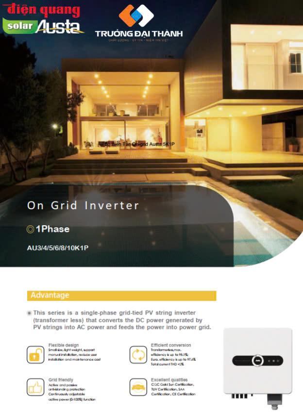Bộ Biến Tần On-grid Austa 5K1P (1 pha, 5kWp)