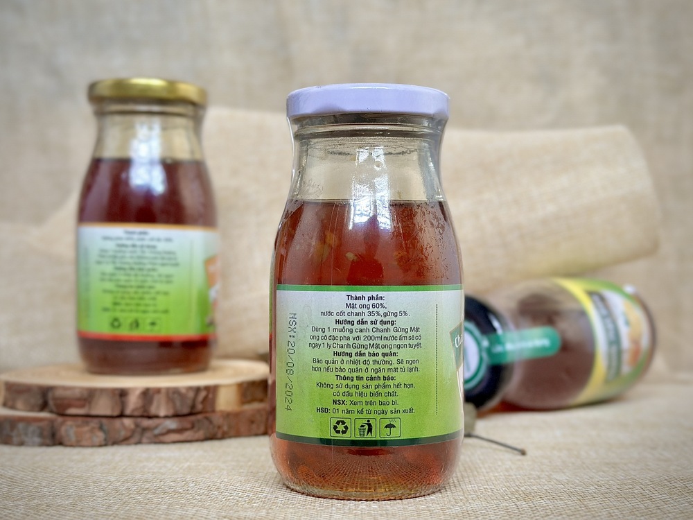 - Bảo quản sản phẩm đúng cách: Chanh gừng mật ong cô đặc cần được bảo quản ở nơi khô ráo, thoáng mát và tránh ánh nắng trực tiếp để đảm bảo chất lượng sản phẩm. Sau khi mở nắp, hãy đậy kín và bảo quản trong tủ lạnh để kéo dài thời gian sử dụng. Sản phẩm nếu có dấu hiệu biến chất như màu sắc thay đổi, mùi vị lạ, hoặc có nấm mốc thì không nên tiếp tục sử dụng.