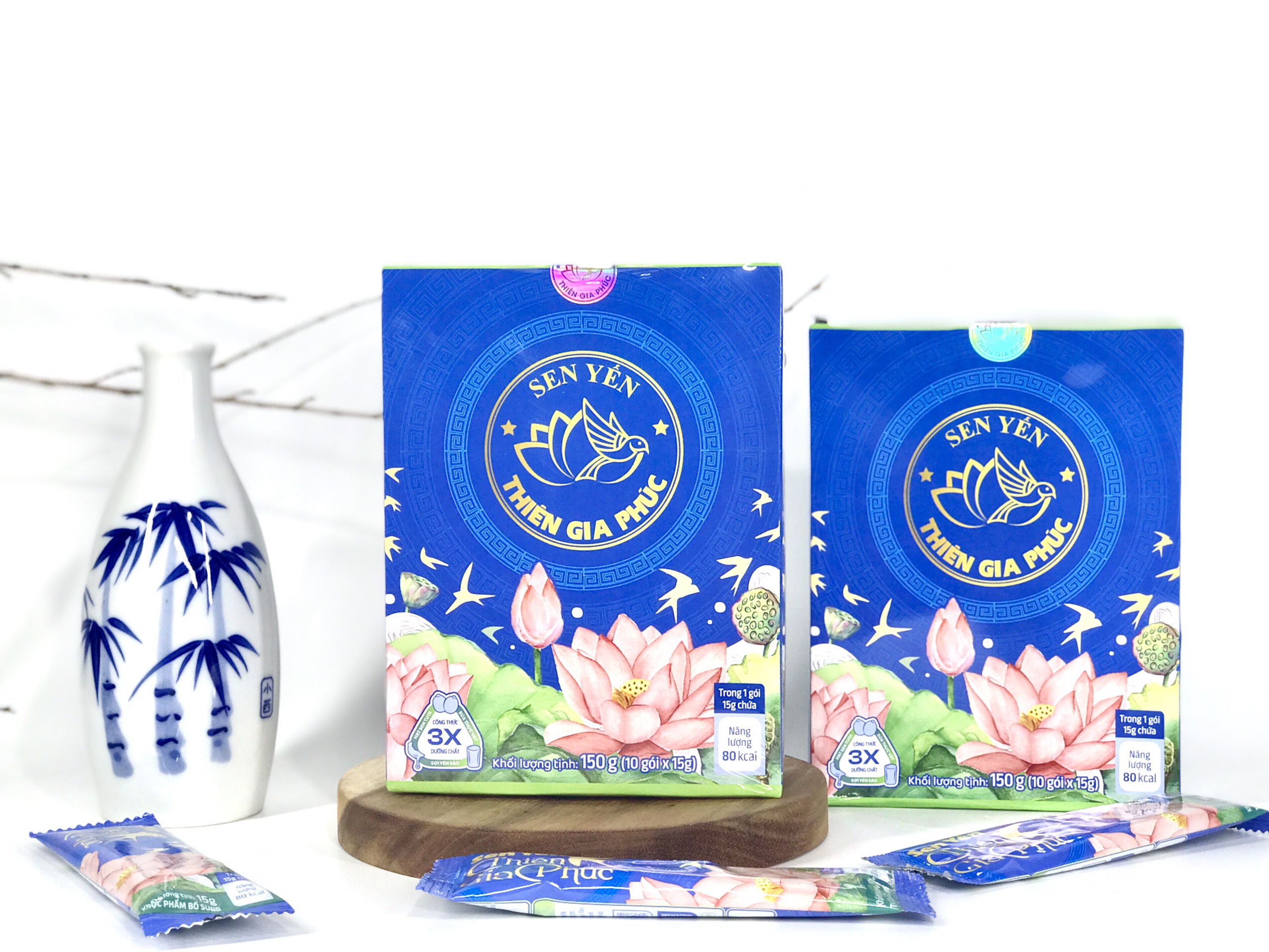Sen Yến Thiên Gia Phúc là thức uống dinh dưỡng được tạo nên từ sự chăm chút trong từng nguyên liệu, kết hợp hài hòa giữa hạt sen tươi tinh khiết và yến sào nguyên chất. Với công nghệ sản xuất hiện đại, sản phẩm giữ trọn vẹn giá trị tự nhiên, mang đến hươn
