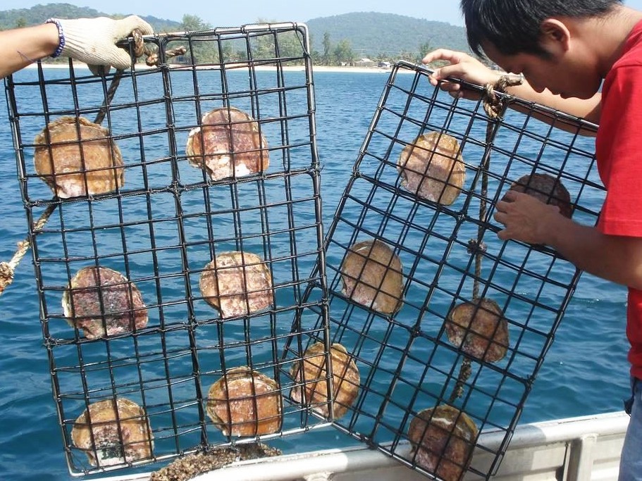 Trai được nuôi trong lồng tre hay lưới treo trong nước biển. Sau thời gian nuôi vỗ, trai đã phục hồi. Dùng lồng tre hay lưới treo trong nước biển có nồng độ muối từ 25-35%). Nhiệt độ từ 20-30 độ C.