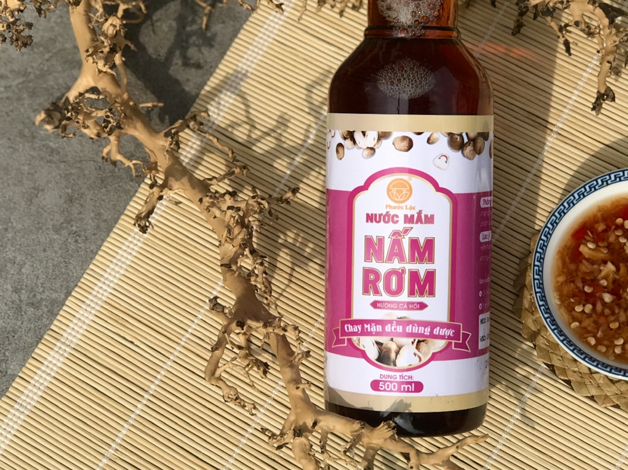 - Tên sản phẩm: Nước mắm nấm rơm hương cá hồi