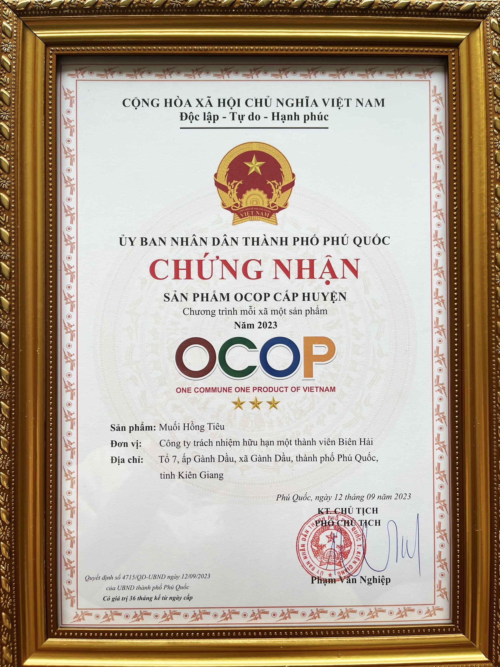 Từ lâu, Tiêu Phú Quốc đã rất nổi tiếng bởi vị thơm, cay nồng và đặc biệt là đậm đà hơn so với nhiều loại tiêu ở các vùng khác. Trước đây người dân Phú Quốc sử dụng hạt tiêu và xuất khẩu tiêu thô thì nay Phú Quốc đã có Muối Hồng Tiêu Phú Quốc Biên Hải được chế biến từ hạt tiêu Phú Quốc.
