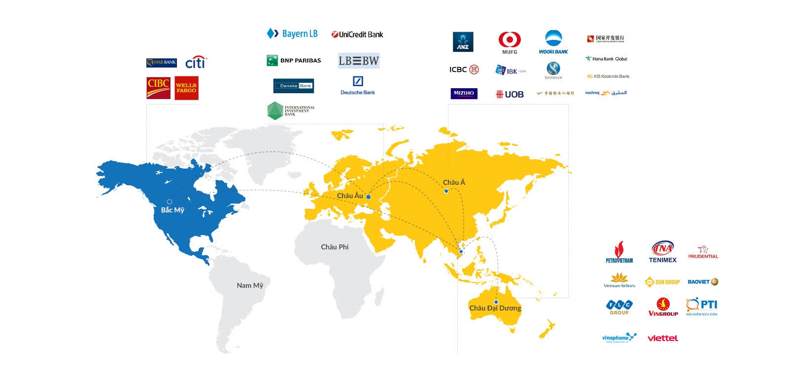 Với hàng trăm đối tác lớn trong lĩnh vực tài chính ngân hàng toàn cầu, PVcomBank kết nối và tối ưu tiện ích cho khách hàng trong mọi nghiệp vụ thương mại quốc tế.