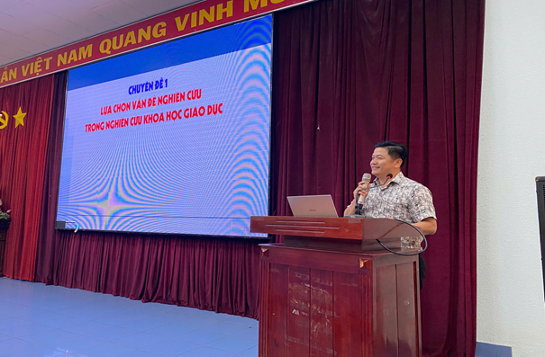 Trong chương trình chính của buổi tọa đàm, các đại biểu và sinh viên được lắng nghe những chia sẻ tâm huyết đến từ các báo cáo viên là những nhà nghiên cứu, giảng viên giàu kinh nghiệm. TS. Nguyễn Đắc Thanh – Phó Trưởng khoa Khoa học Giáo dục, Trường Đại học Sư phạm Thành phố Hồ Chí Minh – trình bày tham luận “Lựa chọn vấn đề nghiên cứu”, tập trung vào việc xác định chủ đề phù hợp, có ý nghĩa khoa học và thực tiễn. TS. Trần Dương Quốc Hòa – Giảng viên Trường Đại học Đồng Nai – chia sẻ tham luận “Định hướng thiết kế và triển khai nghiên cứu”, giúp người tham dự hiểu rõ hơn về quy trình, phương pháp và cách thức triển khai một đề tài hiệu quả. PGS.TS. Dương Minh Quang – Trưởng khoa Giáo dục, Trường Đại học Khoa học Xã hội và Nhân văn – Đại học Quốc gia Thành phố Hồ Chí Minh – trình bày nội dung “Tìm kiếm và trích dẫn tài liệu, lựa chọn tạp chí quốc tế uy tín”, qua đó cung cấp cho giảng viên và sinh viên những kinh nghiệm thực tế khi viết và công bố bài báo khoa học quốc tế.