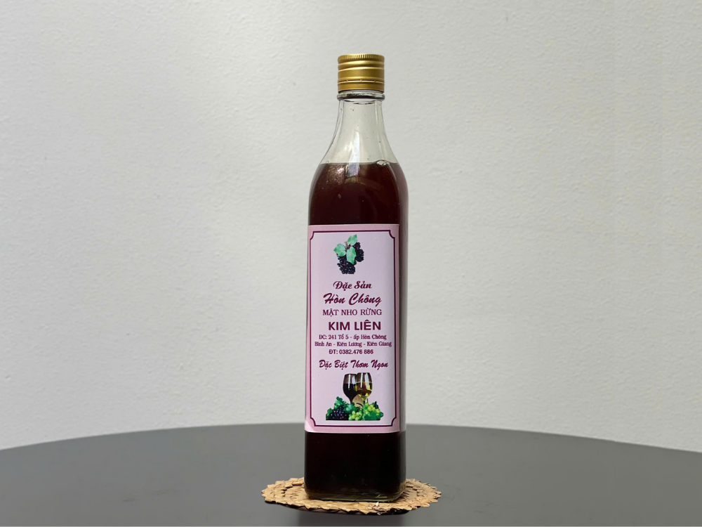 Mật nho rừng Kim Liên một sản phẩm một đặc sản đến từ Hòn Chông với nhiều công dụng tốt cho sức khỏe đang được bày bán trên các kệ hàng của OCOP Kiên An hãy đến và tự trải nghiệm.