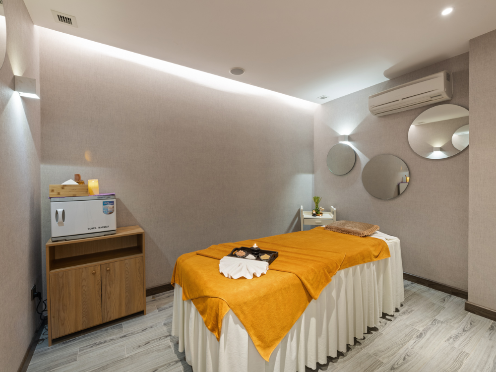 Sunset Spa cung cấp đầy đủ tiện ích như phòng xông hơi khô, phòng xông hơi ướt, jacuzzi. Với tay nghề chuyên môn cao kết hợp cùng các kỹ thuật chuyên nghiệp, các nhân viên massage tại Sunset Spa sẽ đem đến những giờ phút thư giãn tuyệt đối cho các du khách trong mỗi liệu trình chăm sóc cơ thể. Sunset Spa phục vụ các liệu trình chăm sóc cơ thể từ cơ bản như tẩy tế bào chết, đào thải độc tố, ... đến đặc biệt chuyên sâu như cải thiện giấc ngủ, làm dịu căng thẳng, ...