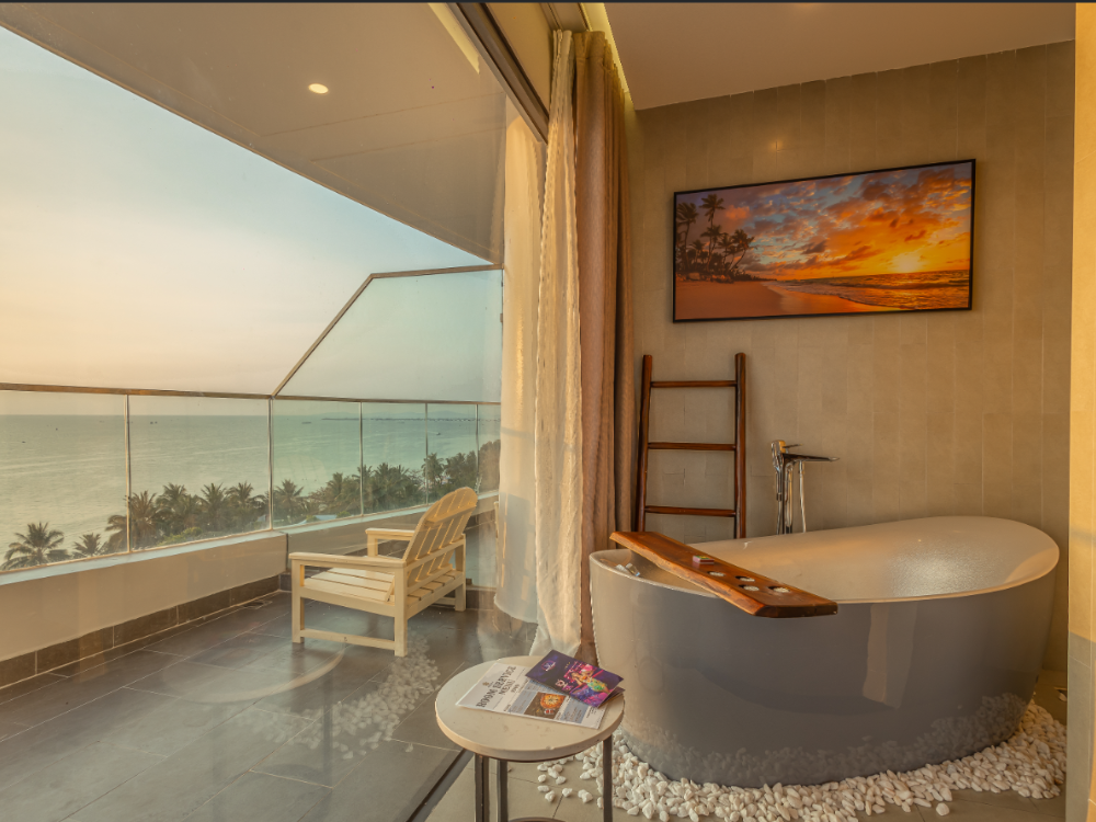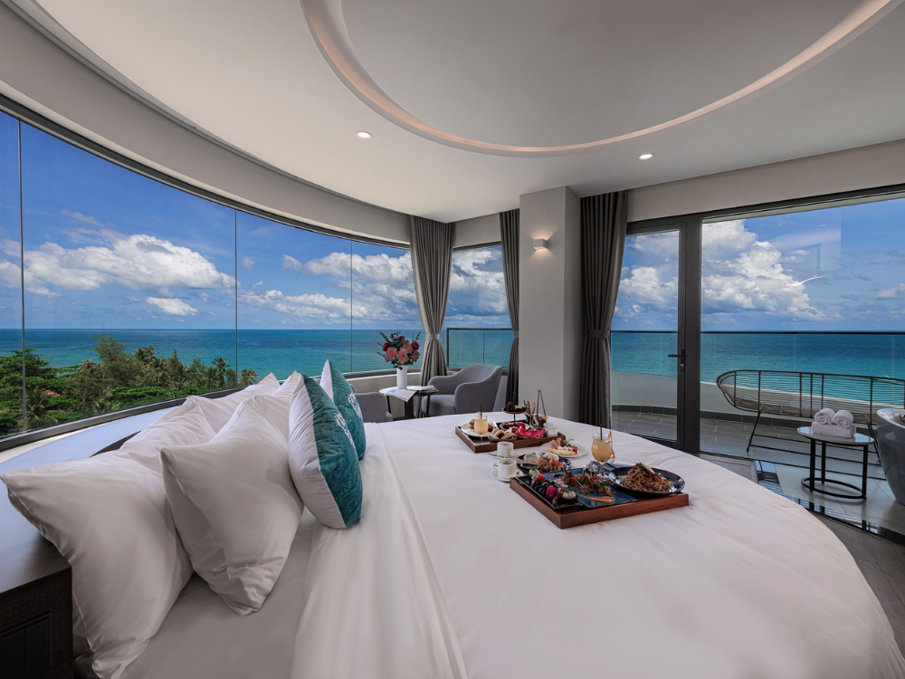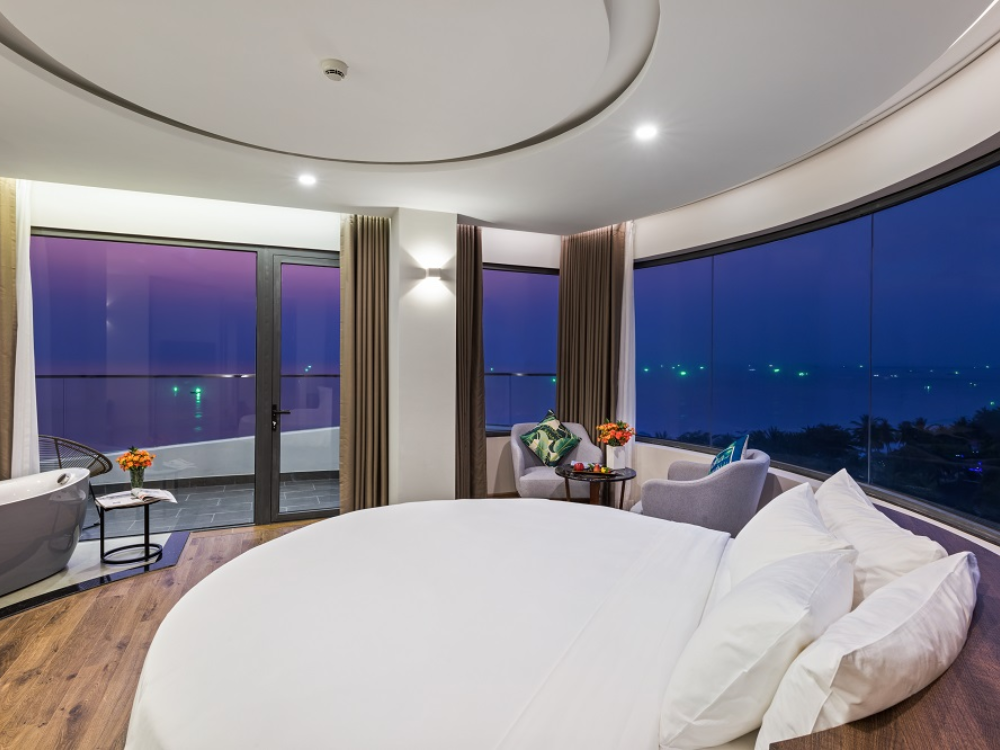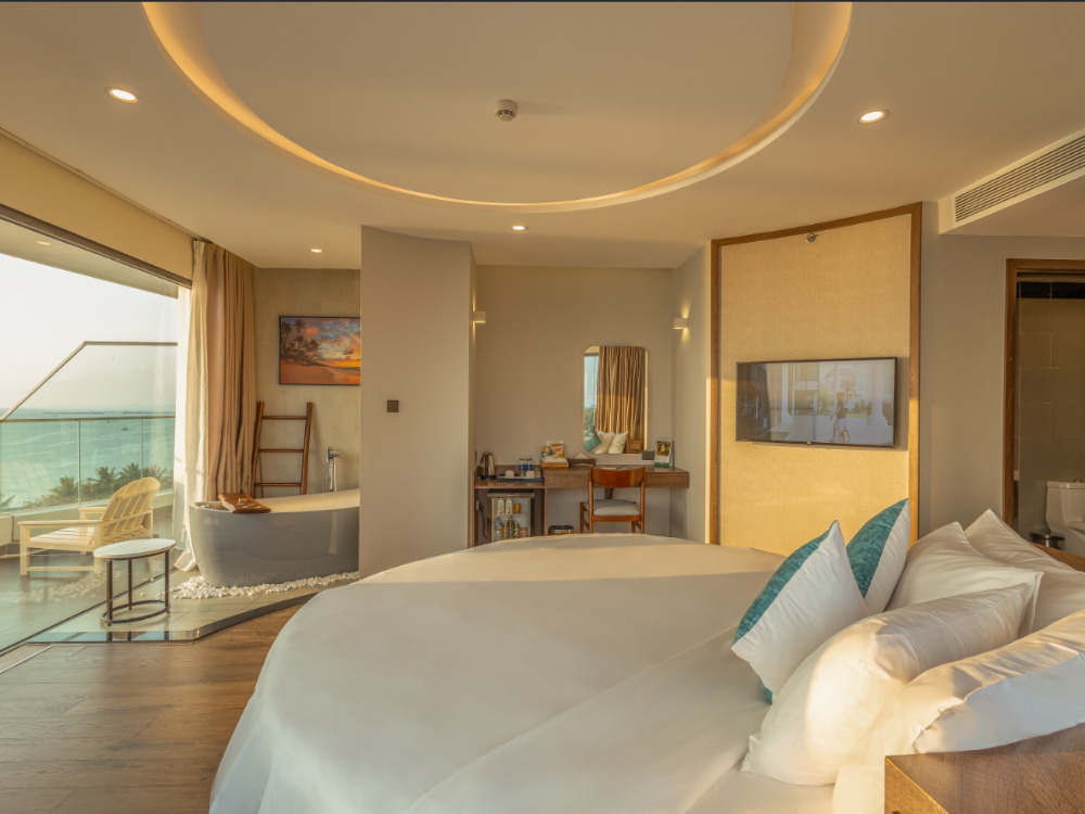 Tự hào là một trong những hạng phòng nổi bật nhất của khu nghỉ dưỡng, hạng phòng Sunset Premium sở hữu thiết kế trang nhã và nội thất cao cấp với điểm nhấn là giường tròn độc đáo, được bao bọc bởi khung cảnh tráng lệ của đại dương và núi rừng nơi đảo ngọc. Hạng phòng Sunset Premium hứa hẹn sẽ mang đến cho Quý khách những trải nghiệm trọn vẹn nhất.