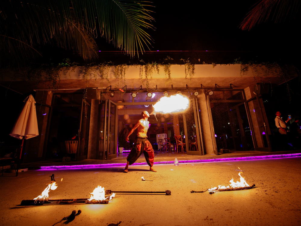 Sunset Beach Bar & Restaurant là quán bar bãi biển toạ lạc ngay trong khuôn viên của khu nghỉ dưỡng. Bao quanh quán là biển trời hùng vĩ, cảnh sắc thơ mộng. Vì vậy, Quý khách sẽ có cơ hội chiêm ngưỡng trọn vẹn vẻ đẹp của thiên nhiên đảo ngọc, đặc biệt là khung cảnh rực rỡ sắc màu mỗi khi hoàng hôn buông xuống ngay tại quán. Không chỉ phục vụ những ly cocktail tuyệt hảo cùng những món ăn đơn giản nhưng ngon miệng, Sunset Beach Bar & Restaurant còn mang đến cho Quý khách một không gian sôi động với các bản nhạc EDM thời thượng được trình diễn bởi dàn DJ hàng đầu tại Phú Quốc. Ngoài ra, Quý khách cũng sẽ được tận hưởng các phần trình diễn múa lửa "nóng bỏng'', đầy hấp dẫn, mê hoặc, hứa hẹn tạo nên những kỉ niệm vô cùng đáng nhớ cho chuyến hành trình ghé thăm đảo ngọc của mỗi du khách.