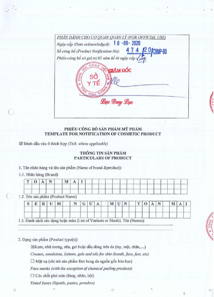 TOÀN MAI- SERUM NGỪA MỤN TOÀN MAI CAM KẾT: